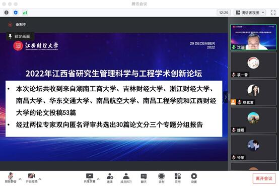 太阳成研究生参加“2022年江西省管理科学与工程学术创新论坛”并获一等奖