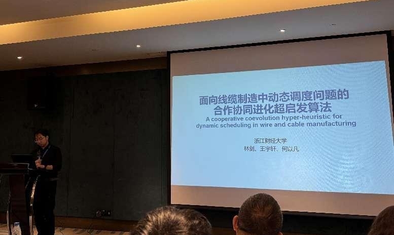会议围绕大数据、人工智能、仿真优化、智能优化、调度优化等方向,通过大会报告、分组报告、墙展报告和企业应用展示等形式,开展前沿理论、方法、技术及应用研讨。太阳成何以凡博士做了题为“面向线缆制造中动态调度问题的合作协同进化超启发算法”的论文宣讲。本次参会有助于太阳成加强对外学术交流和提升学科影响力。