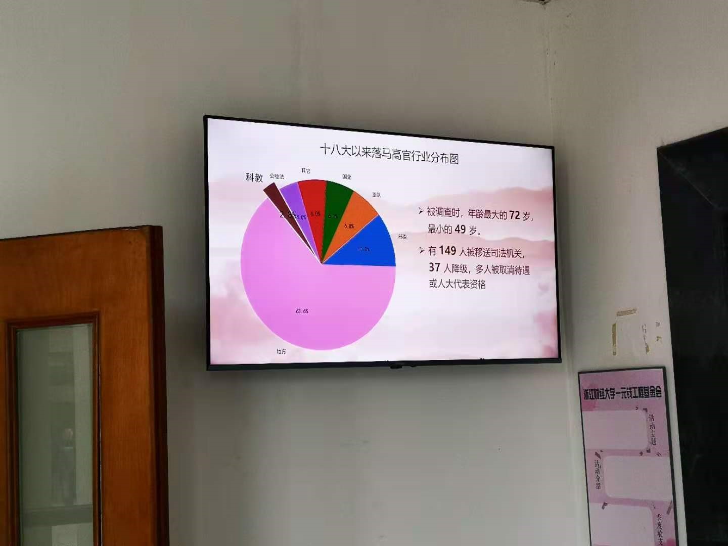 根据学院“清廉桌面”系列活动安排,学院纪委委员陈明晶老师组织师生运用数据挖掘专业知识,收集违纪警示案例,将案例数据可视化,以案明纪,提醒广大师生“手莫伸,伸手必被捉。”,警示教育展对十八大以来落马的高官和高校领导进行数据展示,提醒大家要时刻保持廉洁自律意识。