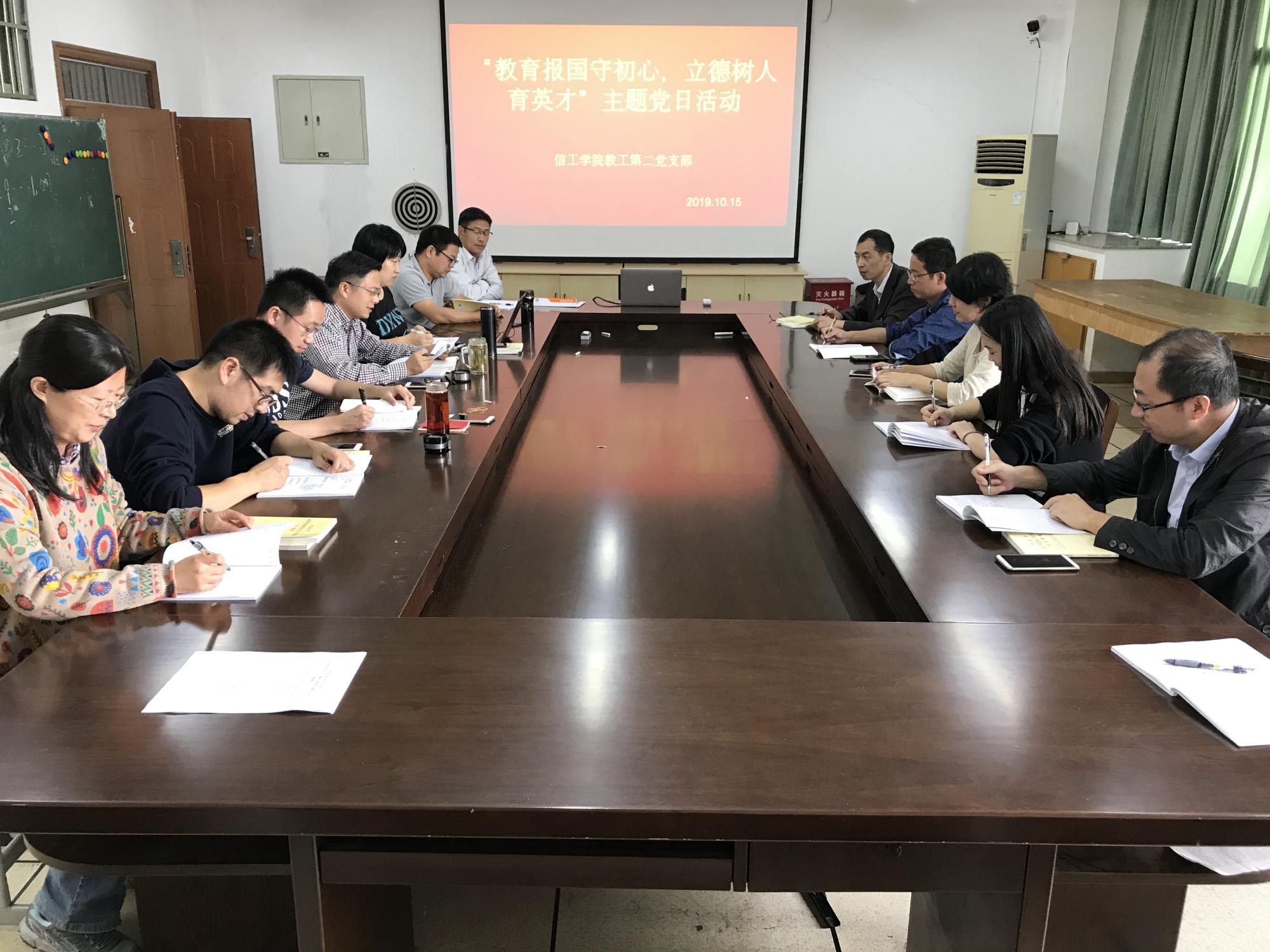 10月15日下午教工第二支部全体党员教师在9号楼305东召开了“教育报国守初心,立德树人育英才”的主题党日活动,以及“党的政治建设”和“党的政治纪律和政治规矩”两个专题学习会。