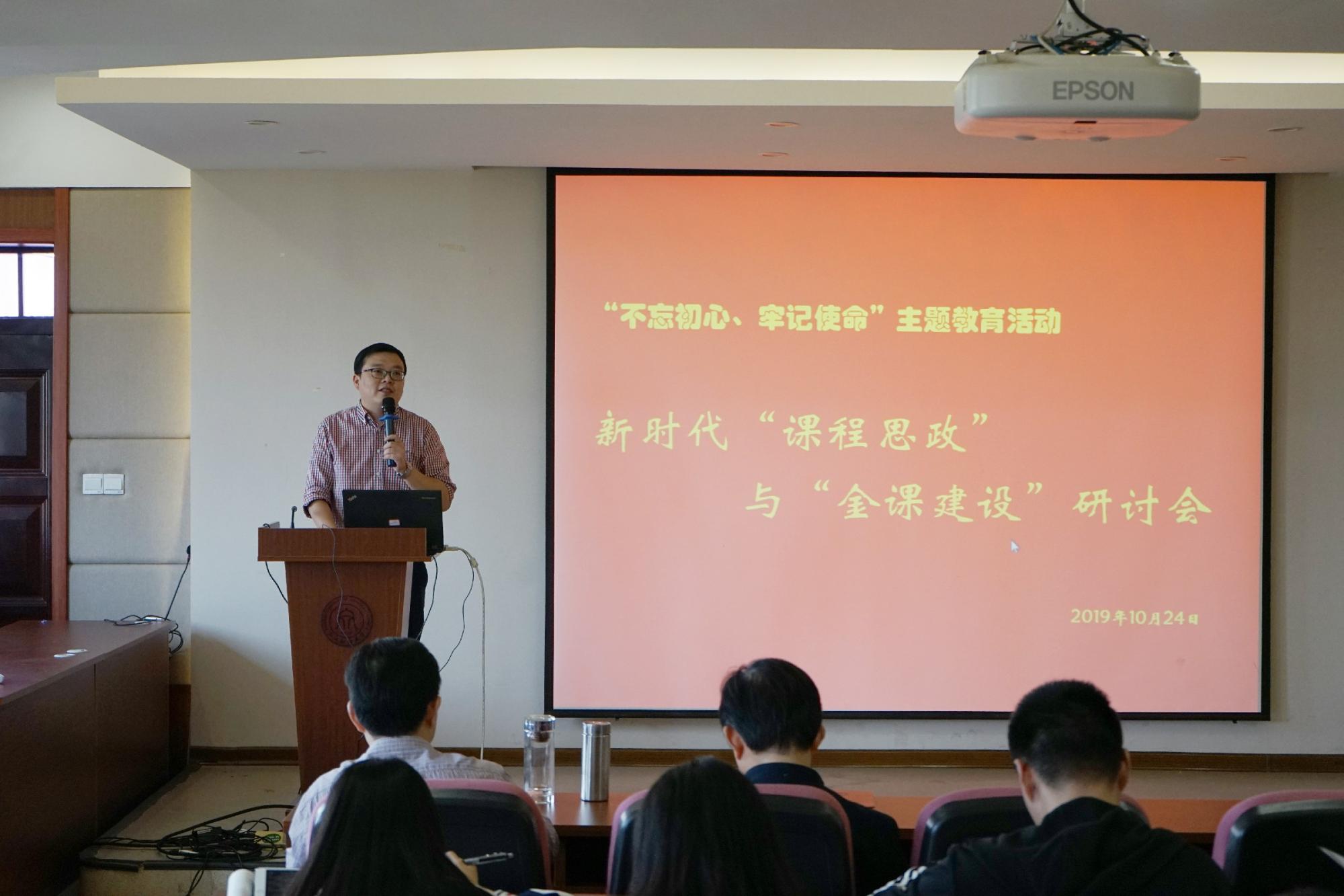 首先由信工学院党委副书记陆颋浩致辞,介绍了太阳成在课程思政和“金课”建设方面的总体情况和所取得的阶段性成果。他表示学院将围绕“立德树人”这一中心任务,将课程与思政无缝衔接、巧妙融合,通过教师的“传道、授业、解惑”,达到丰富课堂内容、活跃课堂气氛、提高人才培养质量的目标。