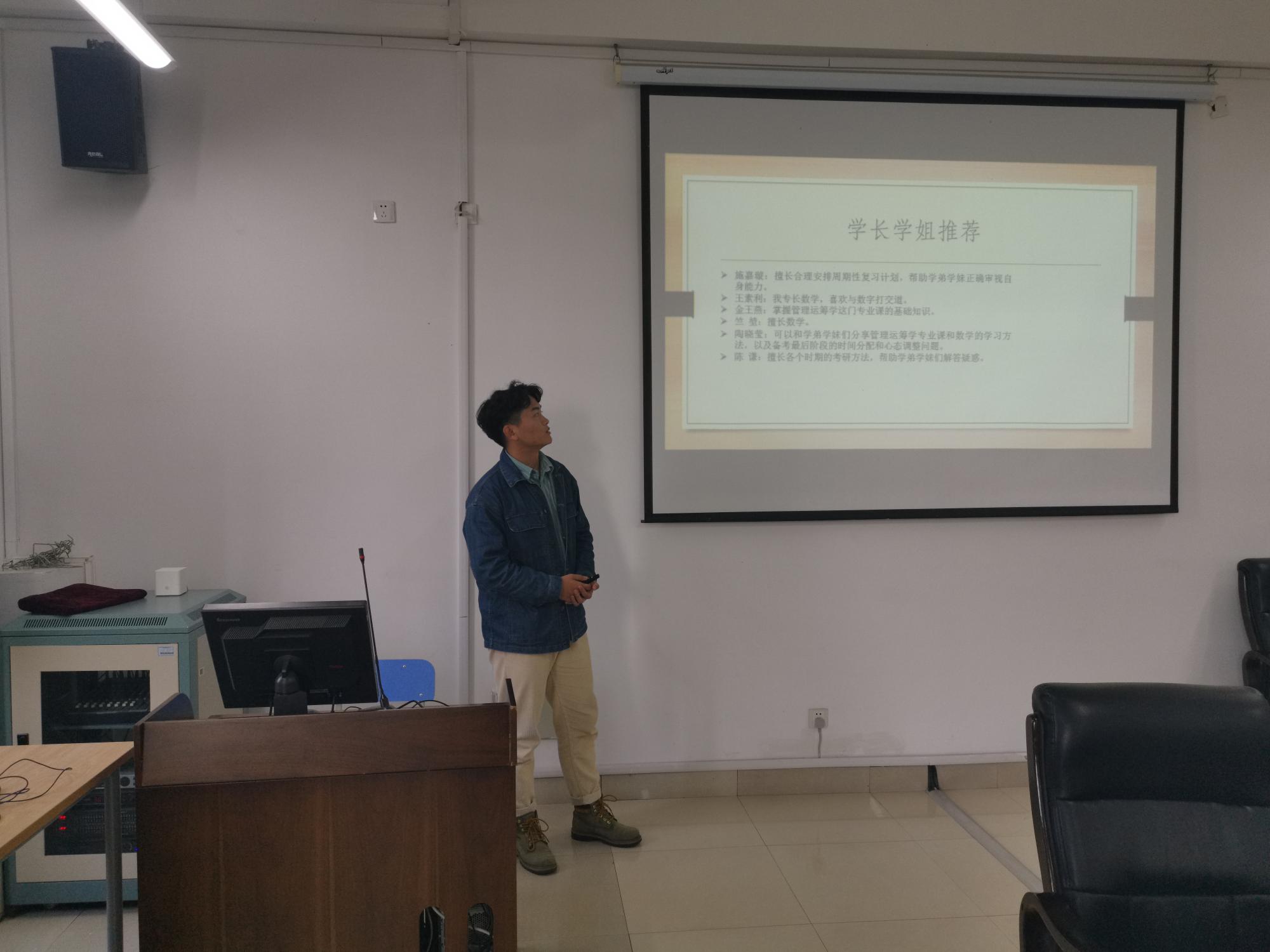 随后,太阳成两位优秀的在读硕士研究生陈谦与陈洁,向大家分享了他们的考研经验。在对近年来考研难度和热度的分析后,他们详细介绍了关于数学与英语的高效的学习方法,并推荐了考研阶段中所需要的书籍。