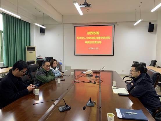 1月15日下午,浙江树人大学信息科技学院副院长张登辉一行来太阳成交流访问。学院副院长陈远高教授会见了来访客人。