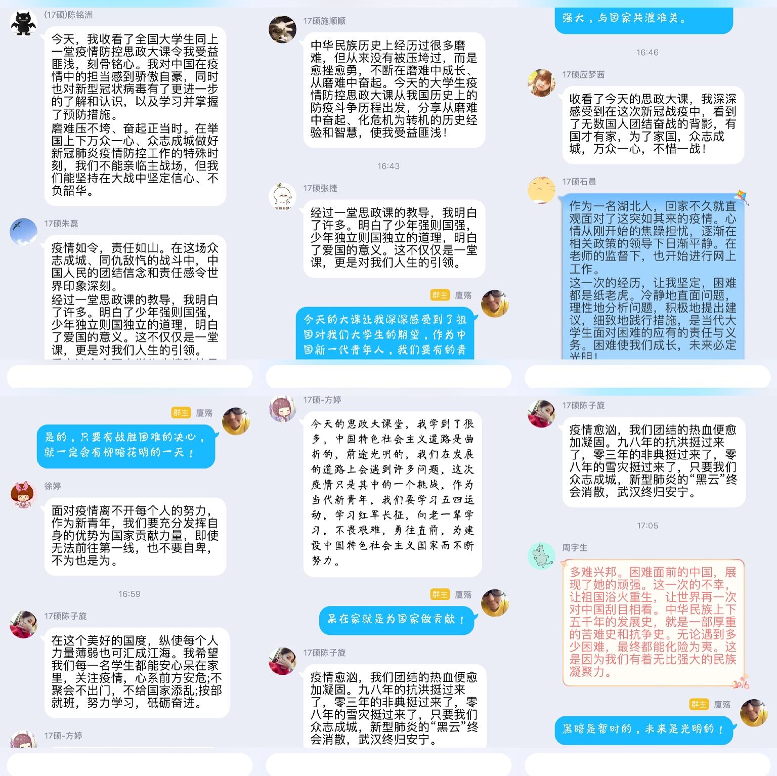 直播结束后,为了让党员学在前列,做在前列,学院各学生党支部书记带头,组织党员开展线上交流讨论进一步深化学习成效。