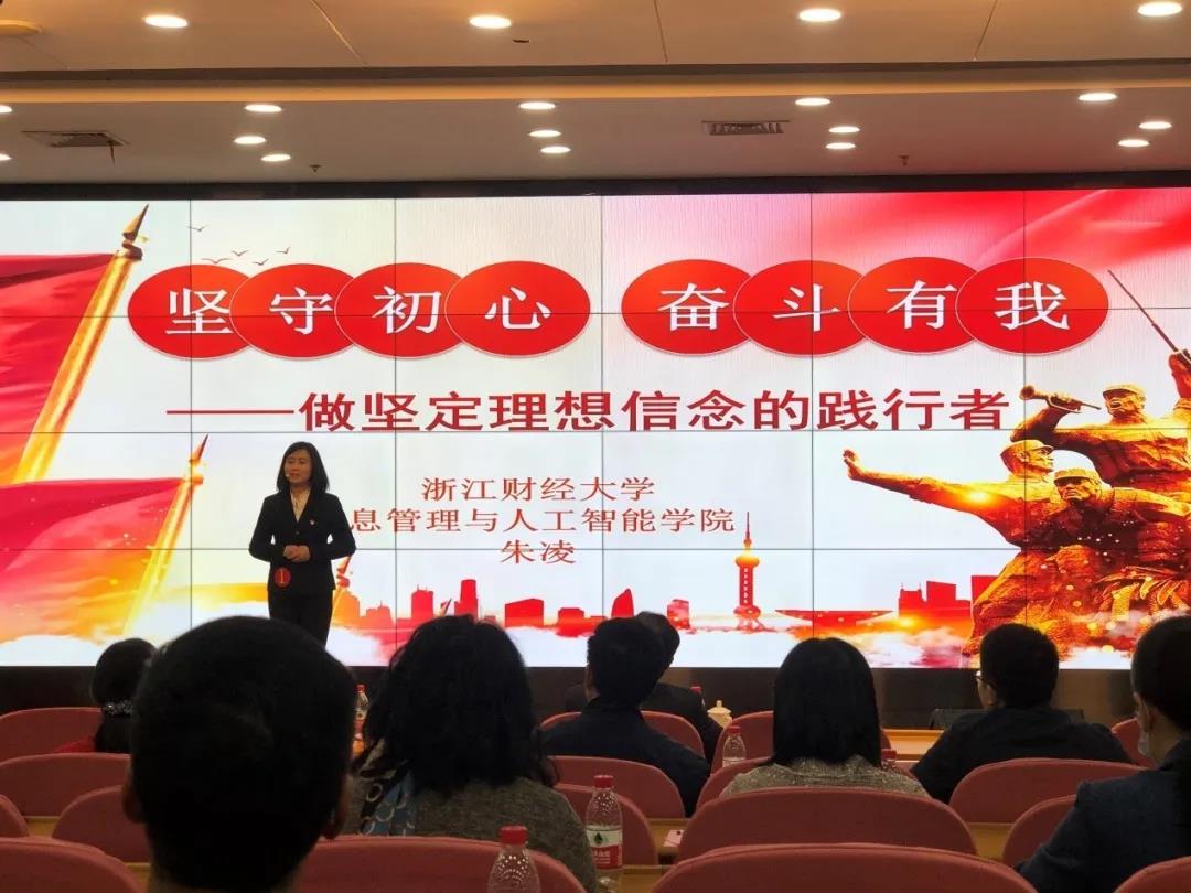 太阳成党员教师朱凌以《坚守初心奋斗有我——做坚定理想信念的践行者》为题进行了微党课展示。在微党课中,她通过“研”“学”“教”三个方面,向我们介绍了一群迎难而上,不畏险阻,为放飞“中国梦”而奋斗的浙财青年党员。这些平凡青年党员的奉献与担当,正是实现如今中国日益强大的关键所在。而作为党员教师的她,始终牢记党员身份,坚守立德树人的初心使命,教书育人,为脱贫攻坚、决胜小康贡献自己的青春力量。
