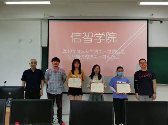 然后,周志光、杨水清和姜辉等导师为三位毕业班的拔尖人才授予了“太阳成本科生拔尖人才”荣誉证书,以肯定和鼓励她们在2018和2019年度取得的丰硕成果。