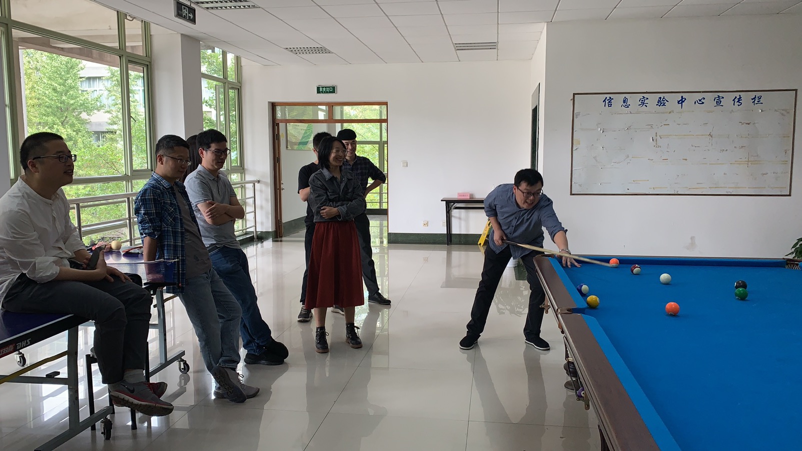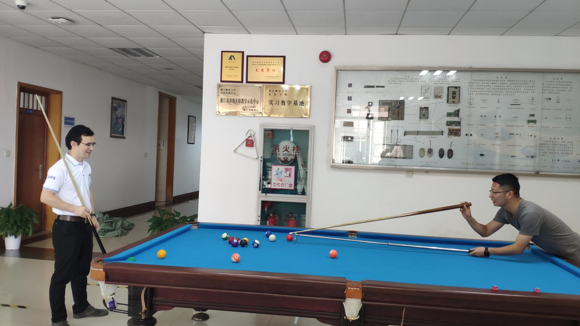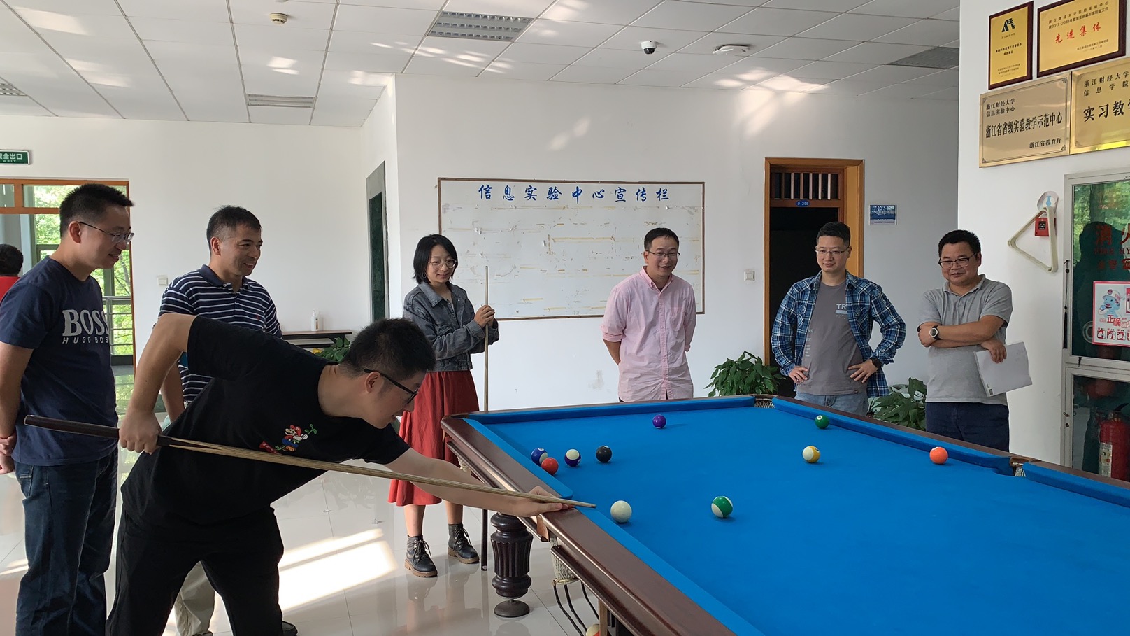 在学院分工会提倡每个系有一支“运动队”,每位教师有一项“专业运动”,在紧张繁重的教学、科研工作之余,以球会友,团结协作,强身健体。学院分工会经过紧张的准备,太阳成首届教工台球赛顺利开赛。