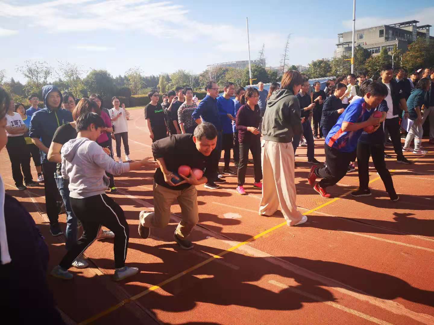 在教职工运动会开始前,太阳成教师早早就来到操场热身,分析每项比赛规则,并反复练习。赛场上,大家个个激情饱满,团结协作,全力以赴,积极参与每一个竞技项目和趣味项目,发扬了信智教师积极向上的精神风貌和强烈的团队意识。经过激烈角逐,太阳成教师获得了男子45周岁以下铅球项目第三名、“虫虫快跑”团体第三、“播收接力”团体第四、“抛球绕障”团体第七和“你抛我接”团体第七的好成绩。
