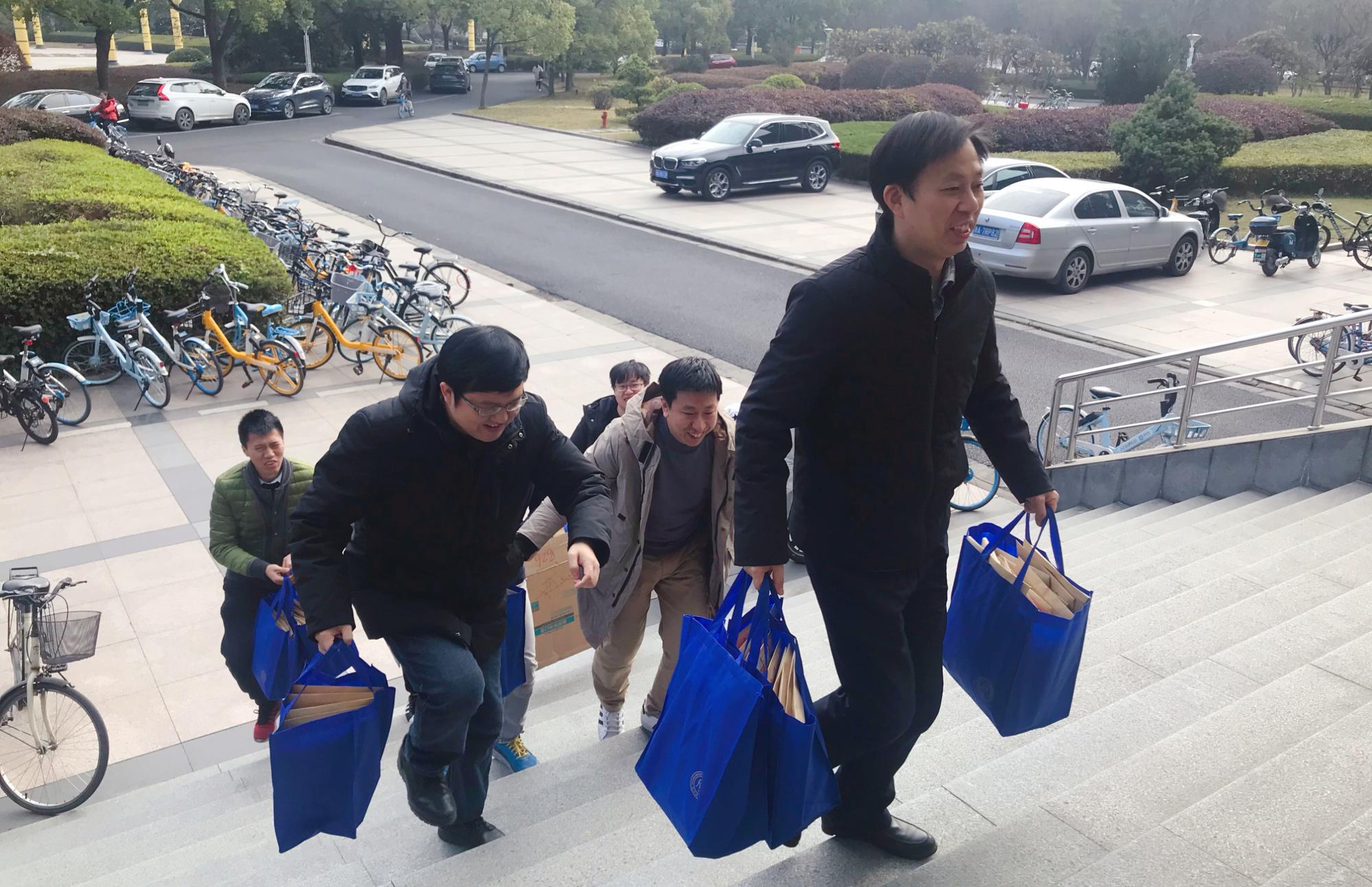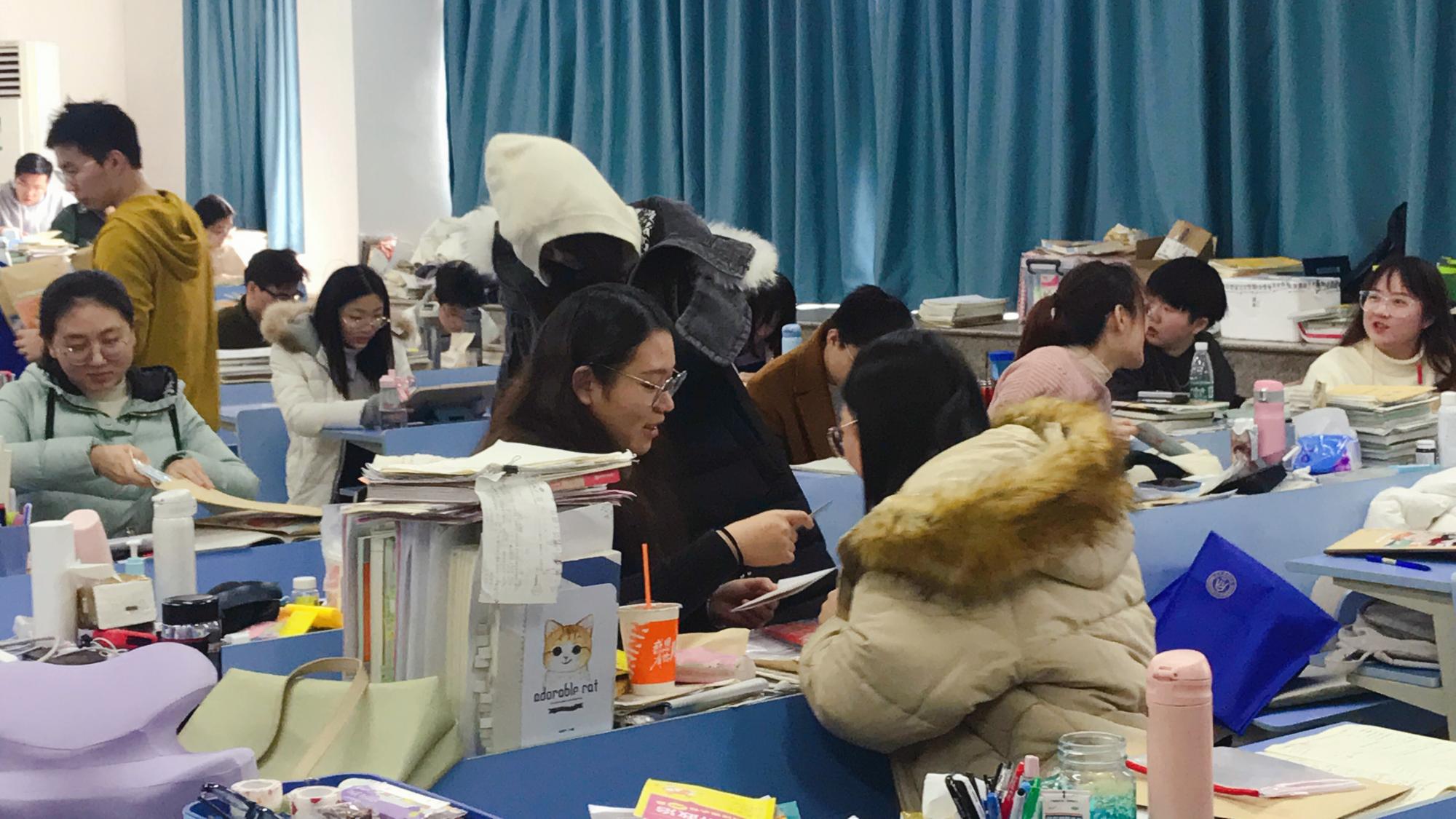 “真正的力量源泉,来自内心深处”、“考神附体,考研加油”......一封封来自导师和辅导员的考研寄语明信片,和暖心的助考大礼包一起被送到了太阳成大四考研学生的手中。在这个局部飘雪的杭城冬日,B413考研教室的氛围却显得格外温暖。12月17日,为缓解学生备考压力,太阳成院长张帅、院党委书记徐奇伟、副院长陈远高、党委副书记田聪以及学院辅导员一行前往考研教室,为处于冲刺阶段的大四学生送去考研慰问与鼓励。