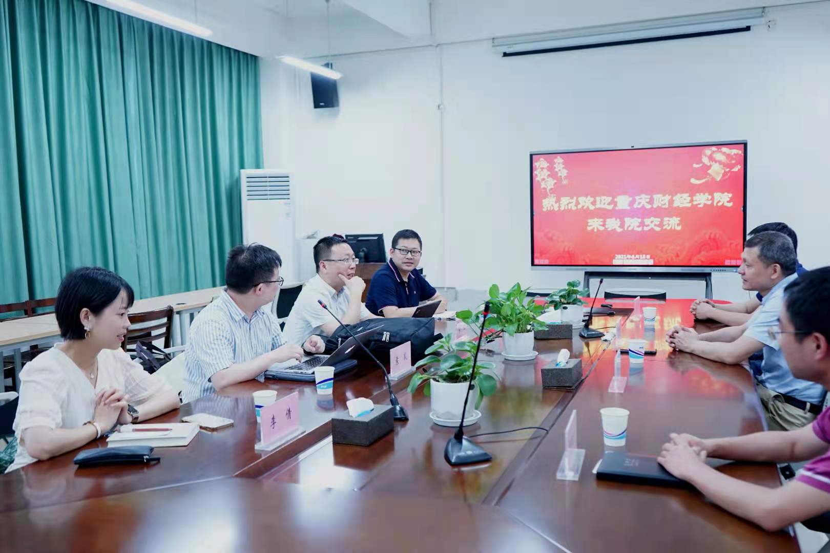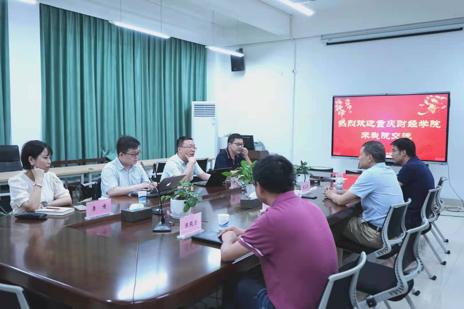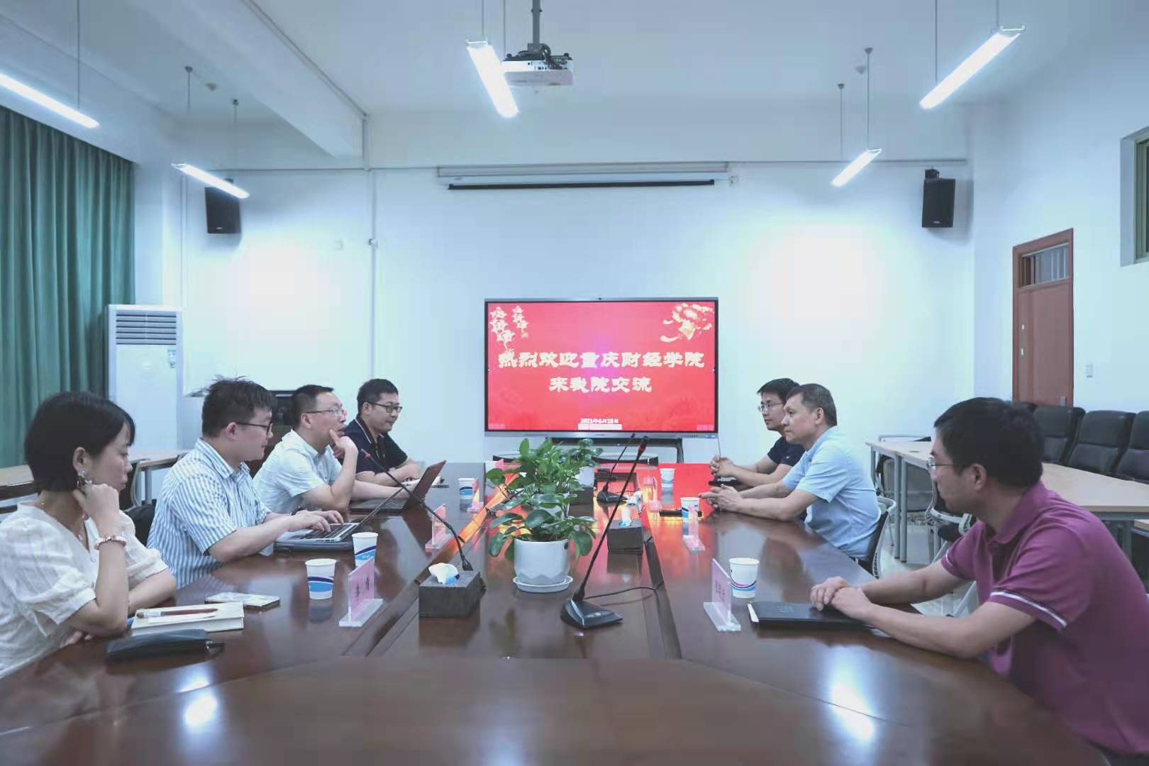 6月18日,重庆财经学院科研处处长张立教授、科研处学科办科长袁毅、人工智能学院副院长唐立力副教授、会计学院李倩讲师一行,同太阳成人工智能研究院院长张文宇、信息管理系主任隆清琦、人工智能系主任陈琰宏,交流分享财经类高校在人工智能赋能新商科建设工作经验。