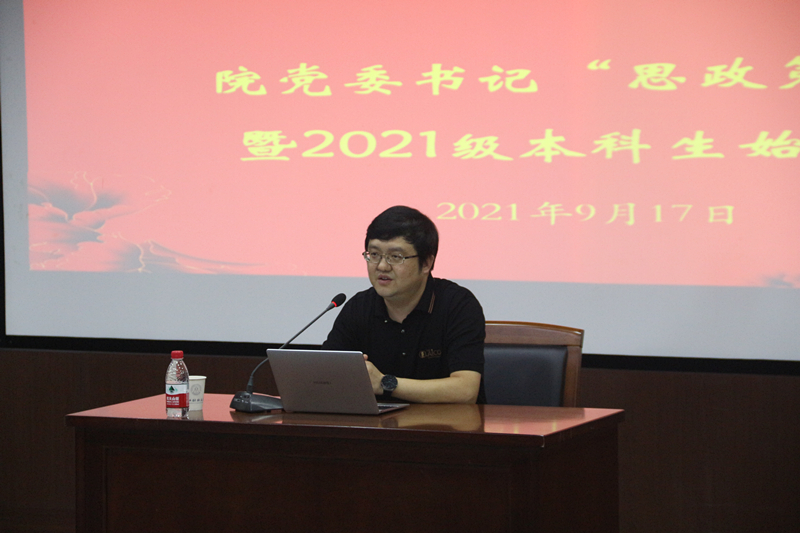 9月17日下午,院党委书记“思政第一课”暨2021级新生始业教育大会于学术第四报告厅和9404会议室(分会场)顺利举行,院党委书记徐奇伟、院党委副书记田聪、学办主任李靓、院团委书记毛立晨、研究生党支部书记冯李哲、学生第四党支部书记徐军军以及2021级辅导员马洪业出席大会,全体2021级本科生和研究生参加。大会由院党委副书记田聪主持。