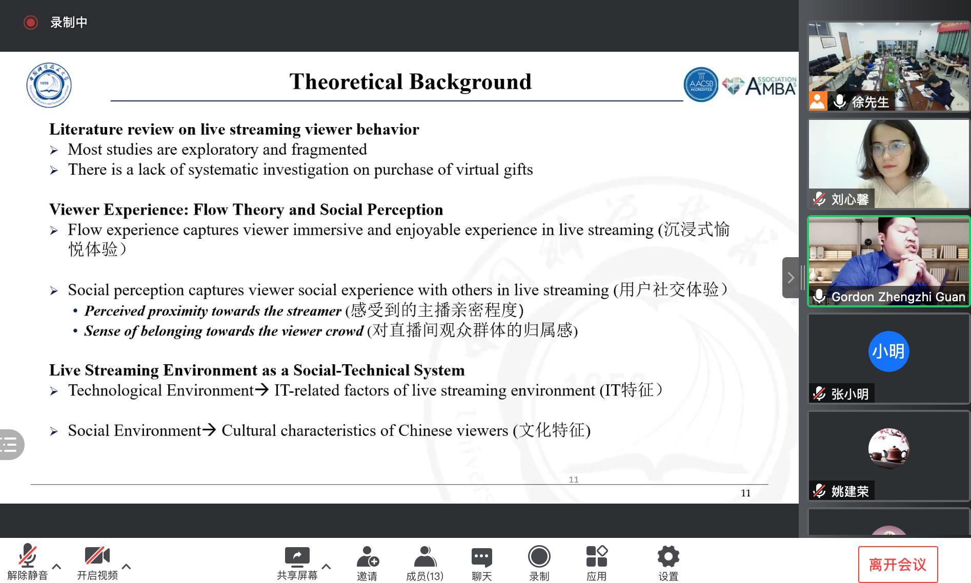 2021年11月17日,suncitygroup太阳成集团第三届国际青年学者论坛如期举行。学院召开分论坛-智能技术与智慧管理前沿。因疫情防控要求,此次以“云论坛”形式举办,共11名来自诺丁汉大学、香港理工大学、中国科学院大学、同济大学、哈尔滨工业大学、上海财经大学等全球知名大学的青年学者与会。院长张帅教授、书记徐奇伟副教授、副院长陈远高教授、院长助理隆清琦博士以及各学科带头人、系部办主任、支部书记和学院研究生代表参加了此次论坛。