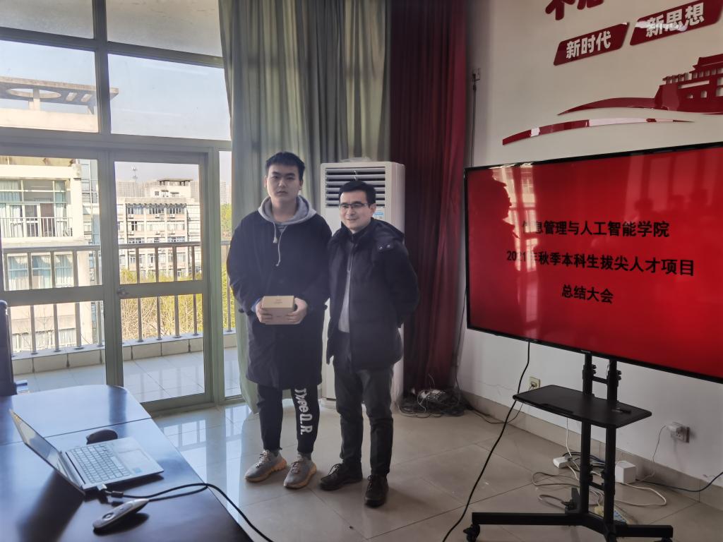 会上,陈远高副院长为刘琪铭、冯睿隽、刘洁英、王浩宇等4位优秀拔尖人才代表颁发了奖品,并由姜辉老师宣读了他们在近年来取得的优异成果,为拔尖人才项目班全体成员树立了标杆和榜样。