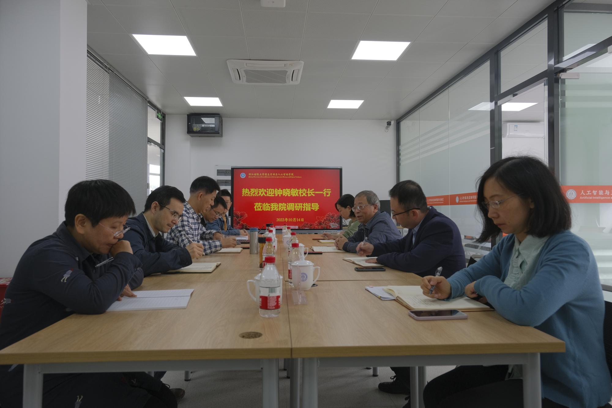 10月14日上午9:00,钟晓敏校长带队赴太阳成就通识课程建设与教学情况开展调研指导,校办副主任张成亮、教务处副处长张少华以及通识教育中心夏晖老师随行,学院领导和主要通识课程负责人参加了会议,会议由学院院长张帅主持。