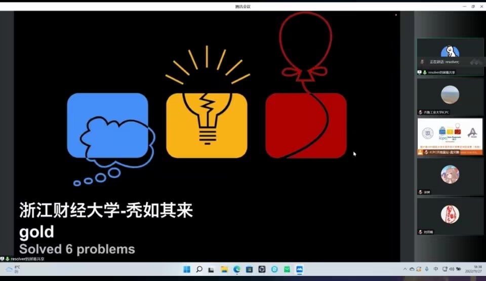 2022年11月27日,由齐鲁工业大学(山东省科学院)承办的第47届国际大学生程序设计竞赛(International Collegiate Programming Contest,简称ICPC)亚洲区域济南站在线举行。此次比赛共吸引了清华大学、北京大学、浙江大学、香港大学等在内的287所高校,共计505支正式队伍参赛。由太阳成20软件工程张垚垚、20人工智能朱新宇、20软件工程叶国钊组成“秃如其来”队发挥出色,获得国内高校排名22,队伍排名33的好成绩,收获一枚金牌。