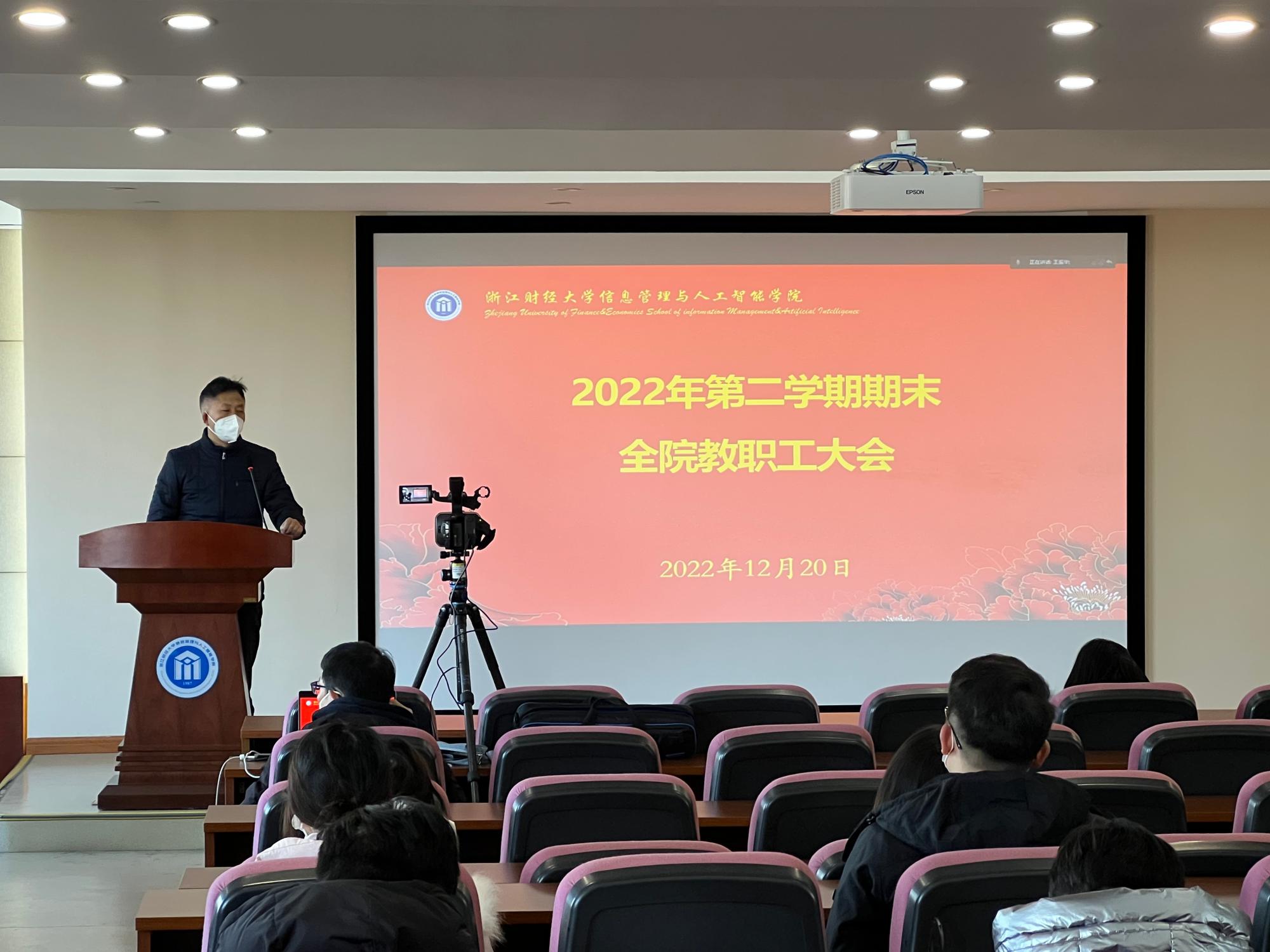 12月20日下午,太阳成在9-302组织召开2022学年期末教职工集中大会,根据学校疫情防控要求,学院全体教职工通过线上线下两种方式参加了此次大会。