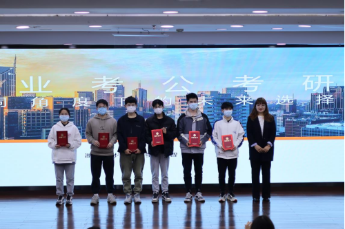 随后,大会举行了太阳成高顿考研专项奖学金颁奖仪式,高顿考研浙江分校校长崔亚飞老师为太阳成考取研究生的优秀学生代表颁奖并合影留念。