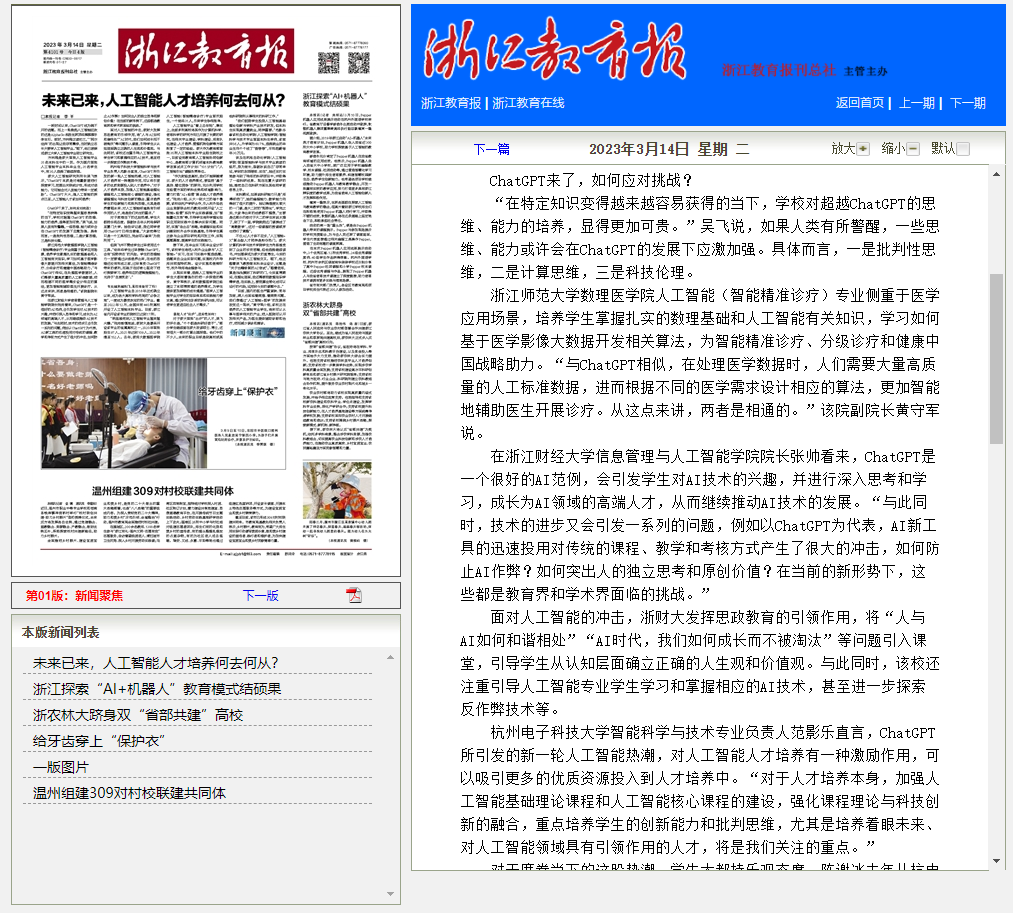 面对人工智能的冲击,浙财大发挥思政教育的引领作用,将“人与AI如何和谐相处”“AI时代,我们如何成长而不被淘汰”等问题引入课堂,引导学生从认知层面确立正确的人生观和价值观。与此同时,该校还注重引导人工智能专业学生学习和掌握相应的AI技术,甚至进一步探索反作弊技术等。