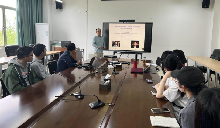 4月11日上午,美国密歇根大学安娜堡分校 FMRI 实验室洪涛博士应邀来太阳成作“一种复拟牛顿近端法在压缩感知核磁共振成像中的应用”主题讲座。浙江工商大学信电学院博士生导师华惊宇教授、以及太阳成部分教师、硕士生、本科生参与了学术交流。讲座由人工智能系黄朝耿博士主持。