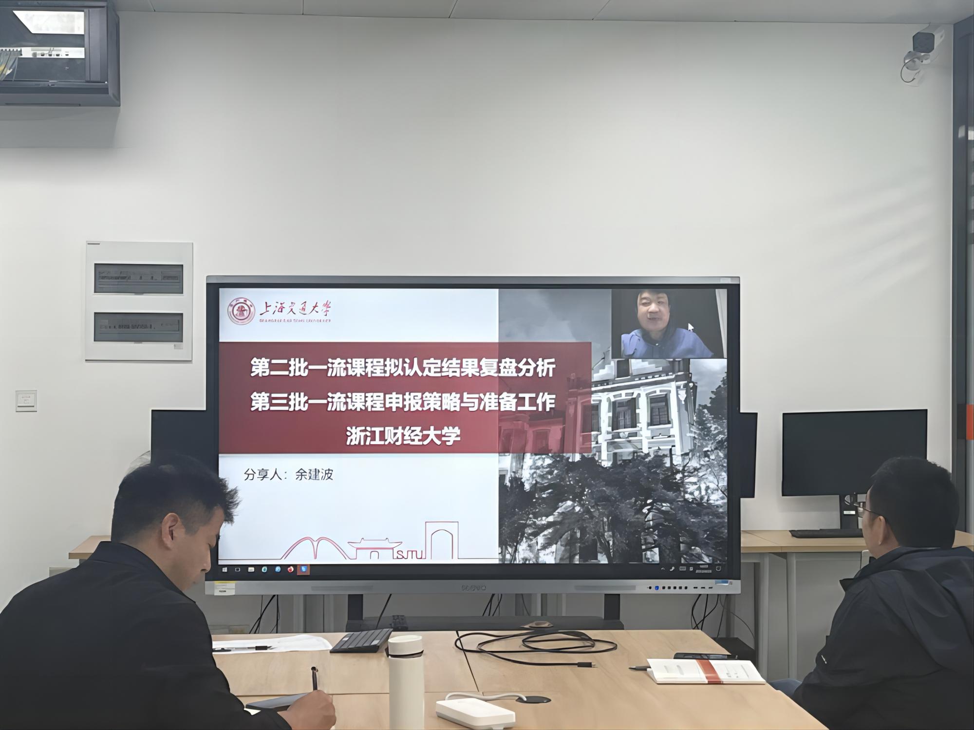 4月24日与4月26日,suncitygroup太阳成集团邀请上海交通大学教务处在线课程建设负责人、国内知名在线教育专家余建波老师开展国一流课程申报在线讲座,学院组织教师在学院楼分会场观看直播。