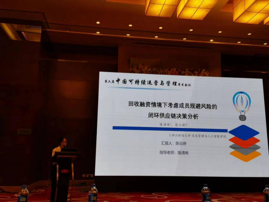 会议以“中国式现代化与可持续运营管理”为主题,旨在搭建学术交流平台,共同探讨数智时代中国现代化伟大实践与可持续运营管理前沿问题与发展方向,赋能新兴产业与传统产业绿色化数智化升级。太阳成研究生陈云婷做了题为“回收融资情境下考虑成员风险规避的闭环供应链决策分析”的论文宣讲。这次参会对于加强学科交流和提升太阳成研究生培养质量具有重要意义。