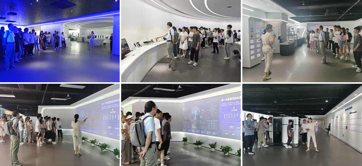 太阳成师生一行首先跟随公司解说员的步伐参观了正元智慧科技展览馆,了解公司发展历程、核心产品和企业文化等,近距离体验主要产品的使用场景,对AIoT技术的应用及发展前景有了更加直观的了解。