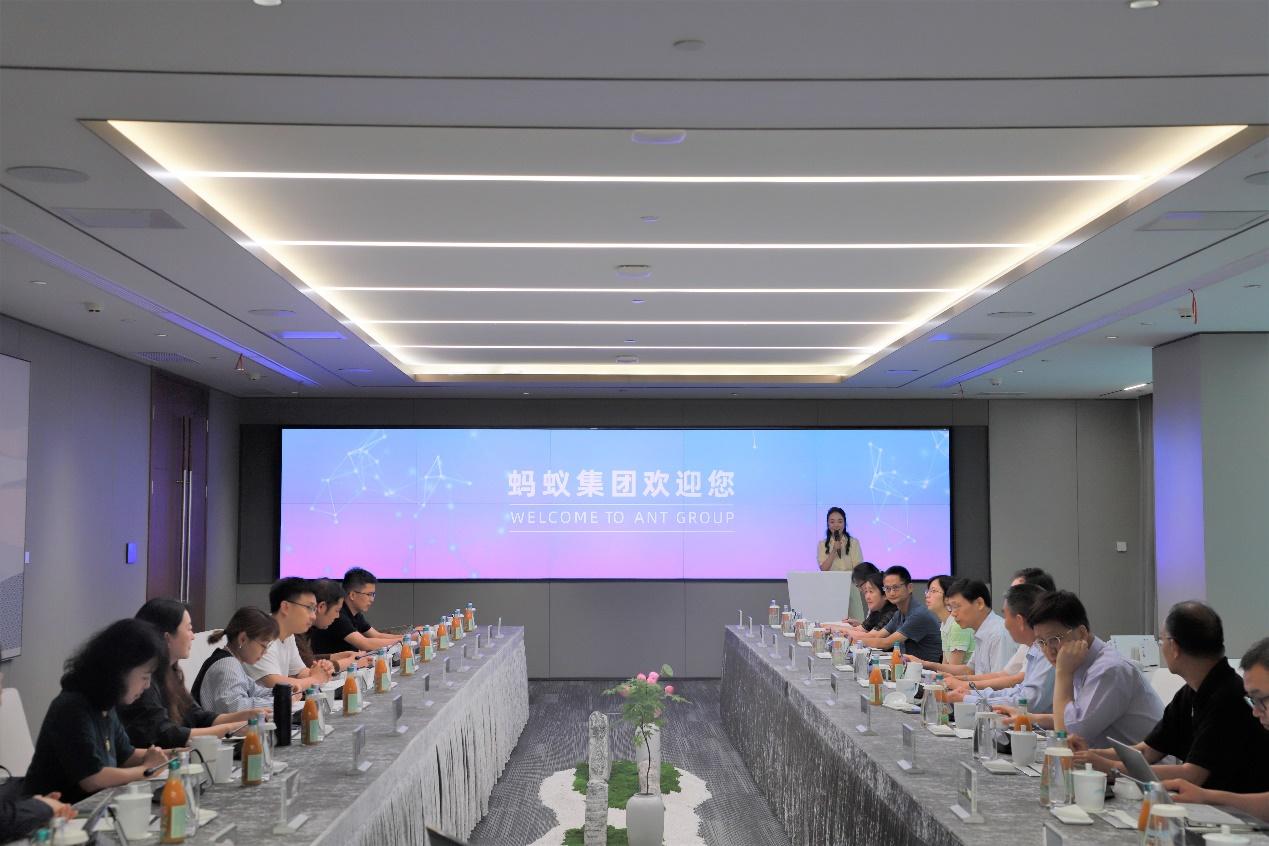 专家团队参观蚂蚁集团和合作伙伴单位,听取了集团的情况介绍并召开了座谈会。蚂蚁集团十分重视本次调研,做了充分准备,蚂蚁集团资深副总裁、首席市场官陈亮出席了座谈会,并回应了专家的问题。