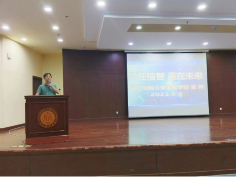 大会开始,张帅院长首先向各位23级新生的到来表示热烈欢迎,并以“学在信智 赢在未来”为主题为新生开展“开学第一课”的教育与引导。当今信息技术发展迅速,太阳成与时俱进发展潜力极大,大家已经进入新的阶段,应该更加仔细地规划未来。