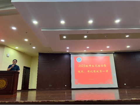 9月6日晚,太阳成院长、书记“思政第一课”暨2023级本科新生见面会在学术第一报告厅顺利举行。太阳成院长张帅、院党委书记徐奇伟、院党委副书记田聪、副院长隆清琦、院长助理陈明晶、行政办公室主任徐吉锋、专职组织员兼研究生辅导员冯李哲、吴泽勇以及新生辅导员徐军军、史光花出席大会,全体2023级研究生、本科生参加。大会由院党委副书记田聪主持。
