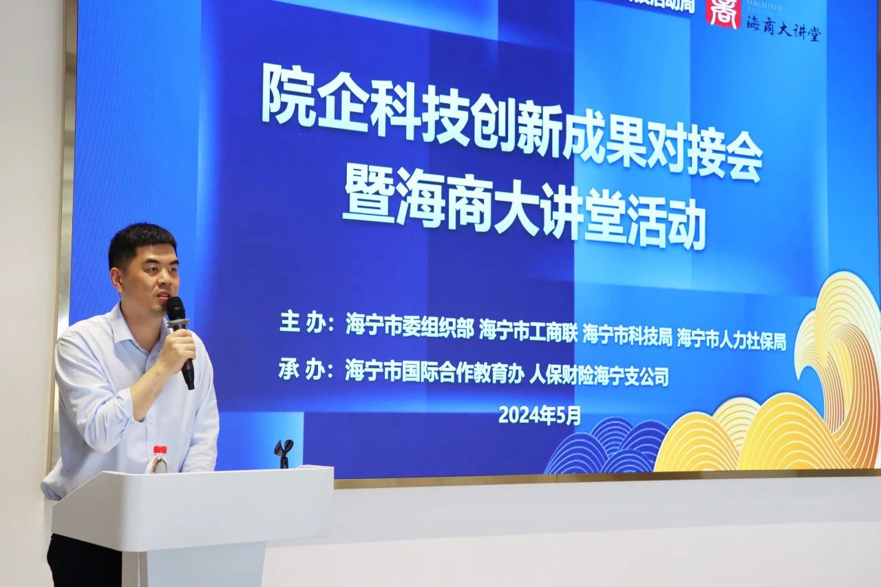 5月24日下午,“海宁院企科技成果对接会”在天通电子信息材料研究院顺利举行。本次活动由海宁市委组织部、海宁市工商业联合会、海宁市科学技术局、海宁市人力资源和社会保障局联合主办。太阳成人工智能系主任陈琰宏老师代表学院参加了此次活动。