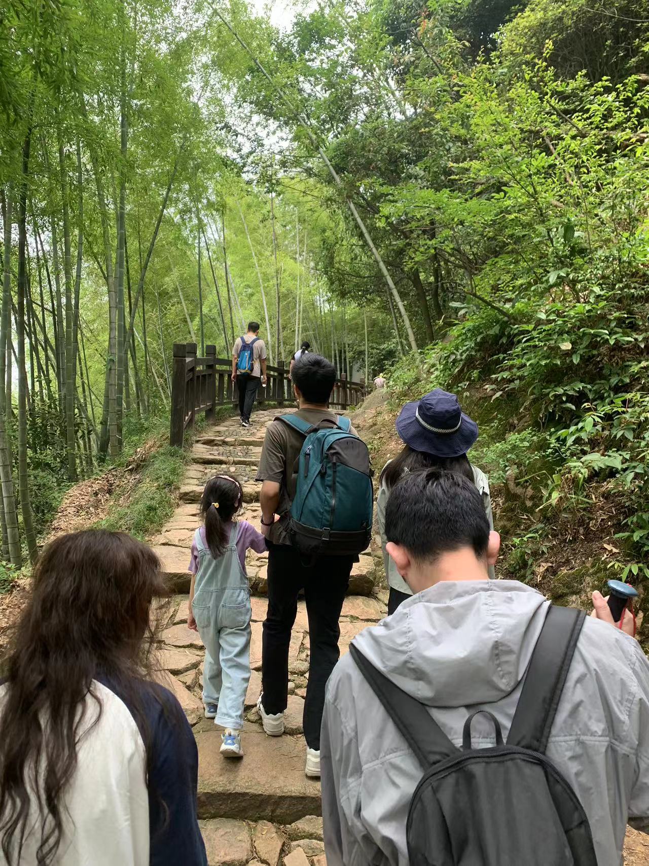 春意藏,夏初长,风暖人间草木香。径山,以其秀美的山水和厚重的历史文化而闻名。老师们被周围的自然美景所吸引,纷纷下车驻足欣赏。在换乘接驳车前往径山古道的过程中,大家已经迫不及待地想要一探古道的神秘与美丽。