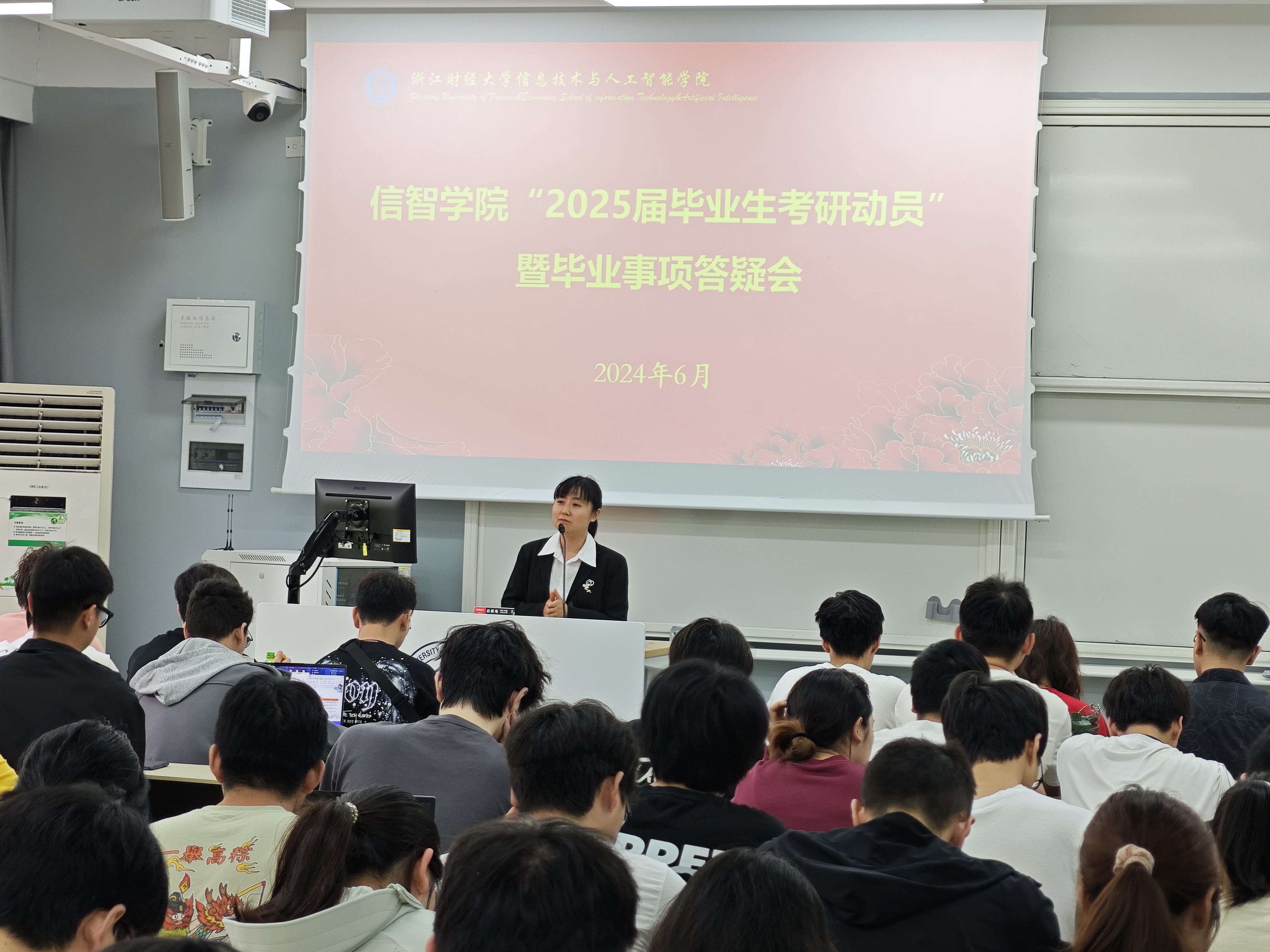 会上,朱凌老师详细介绍了考研形势,并对毕业生考研方向选择以及考研策略做出针对性指导。希望同学们能够做好考研复习计划,注重劳逸结合。吴轶韵老师以选择、心态、健康三个关键词为题,为毕业生提出宝贵建议。洪宝华老师分享了2023、2024年学院毕业生升学、就业情况,引导同学们尽早做好职业规划,明确职业方向。吴泽勇老师就毕业相关注意事项为同学们提供了丰富信息,助力学生顺利毕业。2024届升学优秀学生代表张有民、胡家赫分别从考研、出国层面分享了自己的实战经验,从学校选择、复习时间安排、学习方法、应试技巧等方面分享了心得体会。现场氛围融洽、干货满满,赢得了同学们的阵阵掌声。