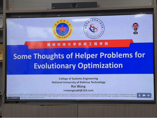 7月12日,国防科技大学系统工程学院装备管理工程系副主任王锐研究员应邀来太阳成做主题为“多模态优化中的辅助问题应用”的学术讲座,太阳成相关研究方向的教师和研究生参加。