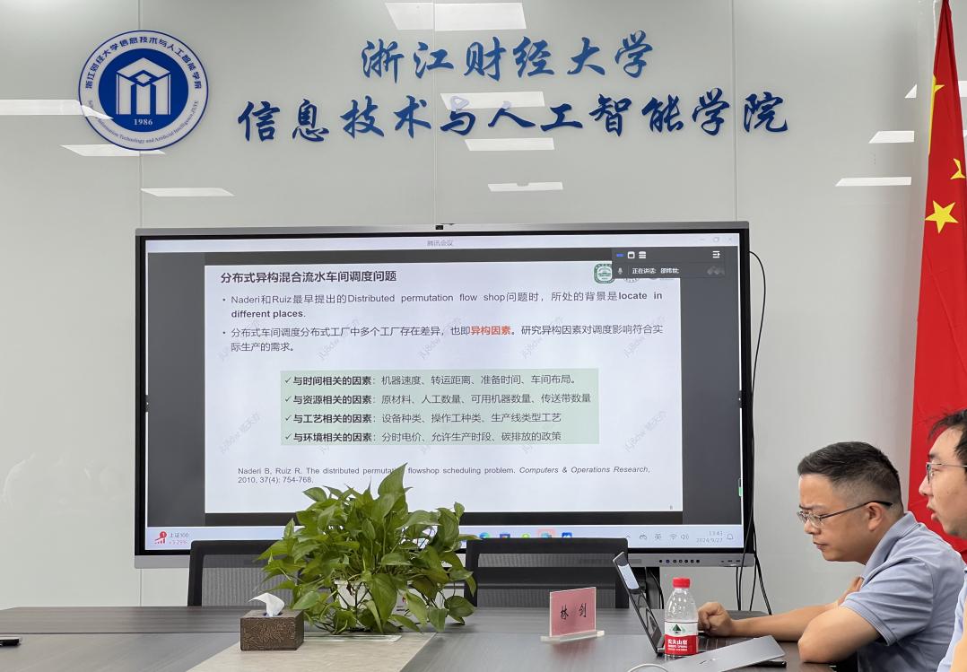 2024年9月27日,太阳成邀请到了南京师范大学计算机与电子信息学院的邵炜世副教授,作了主题为《分布式异构混合流水车间调度优化》的讲座,此次讲座由科研副院长林剑教授主持,太阳成相关研究方向的30余名教师和研究生参加。
