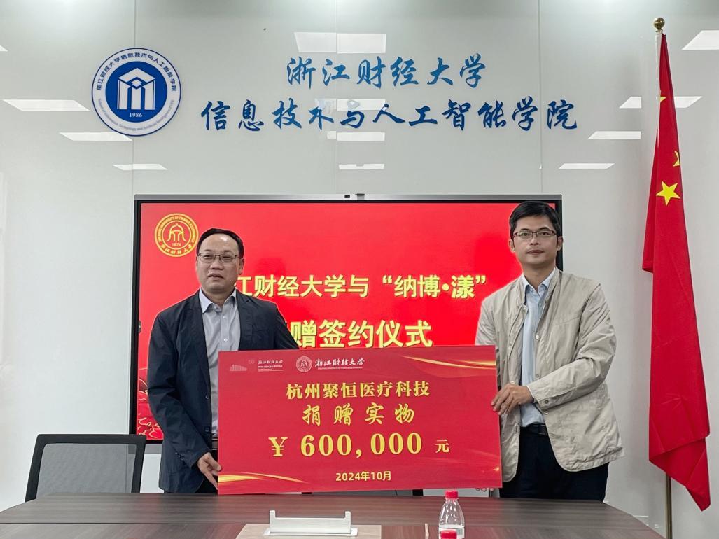 10月24日,学校与杭州聚恒医疗科技有限公司举行“纳博·漾”捐赠签约仪式。校党委委员、组织部部长、统战部部长申屠莉,杭州聚恒投资有限公司董事长、1996届校友陈三春,杭州聚恒医疗科技有限公司总经理毛菁华等出席仪式。