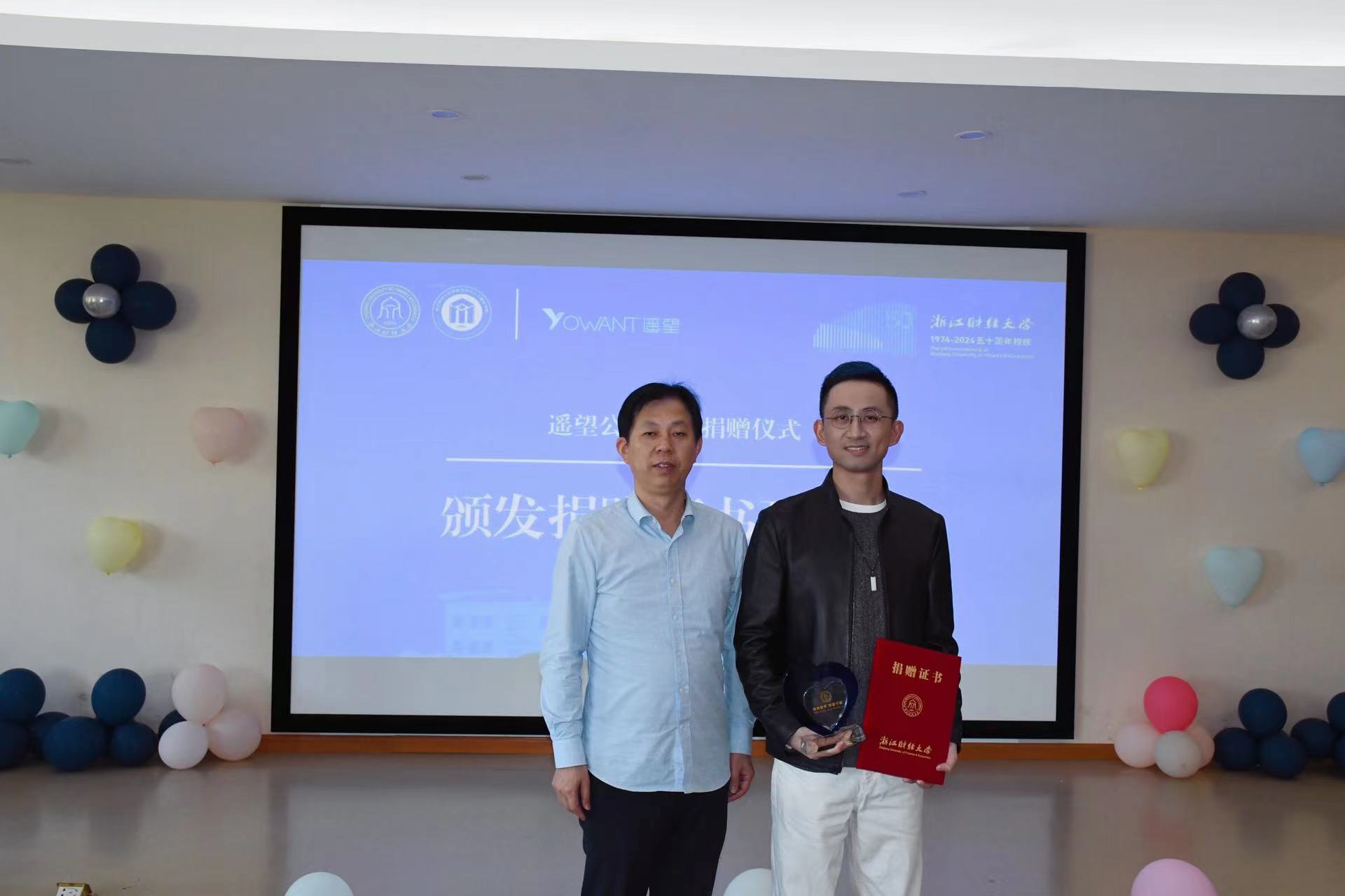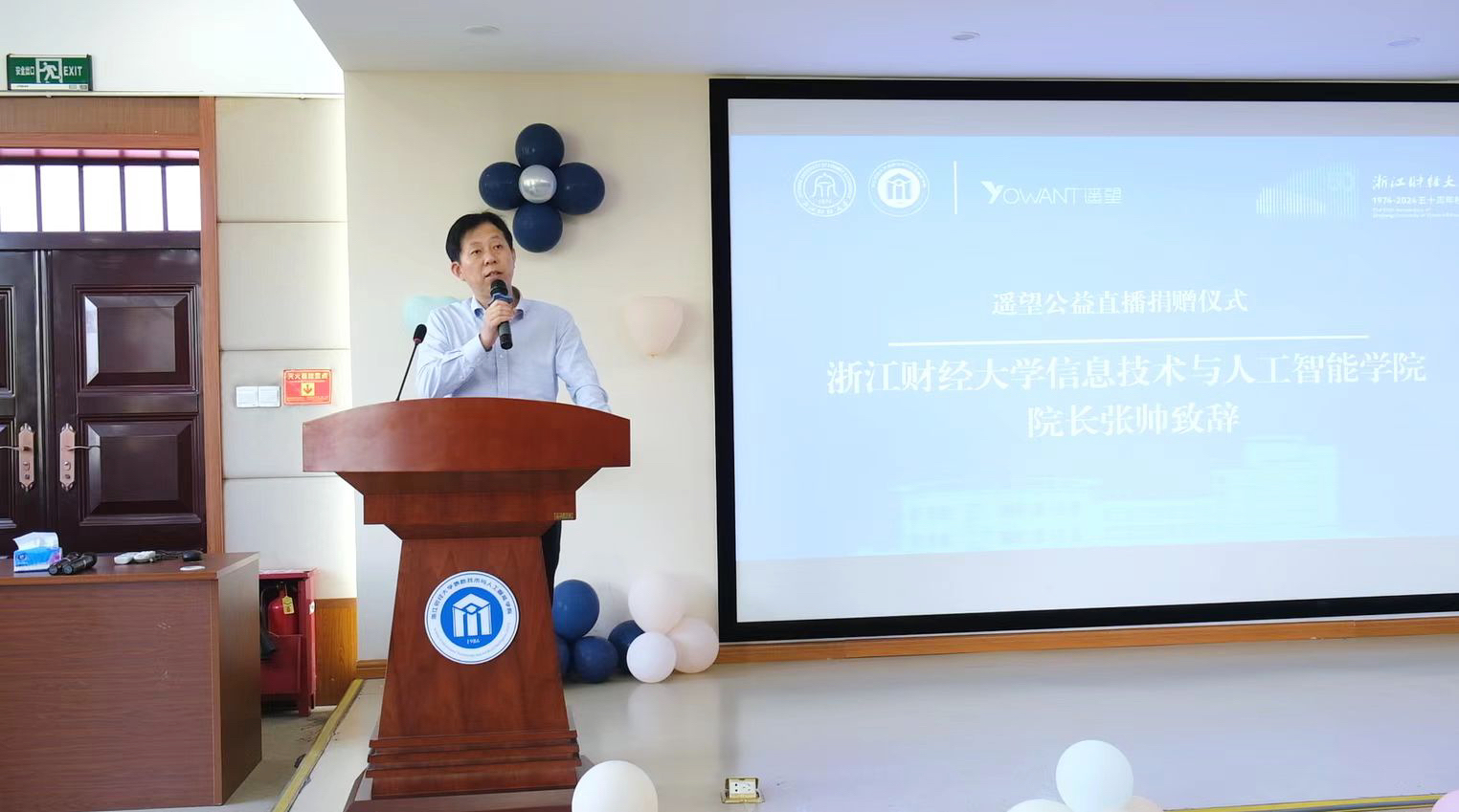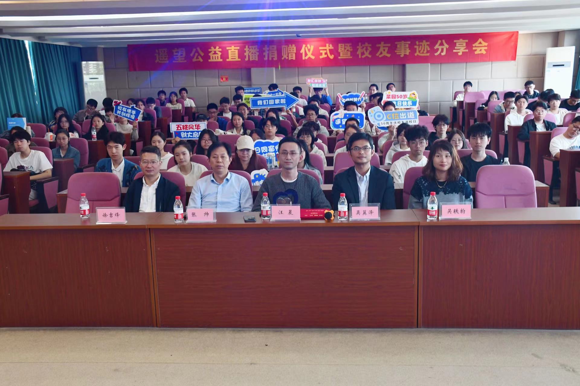 下午 13:30,遥望公益直播捐赠仪式在9302举行,杭州遥望网络科技有限公司公关营销总监汪晨、suncitygroup太阳成集团suncitygroup太阳成集团院长张帅、党委书记吴翼泽、党委副书记吴轶韵、办公室主任徐吉锋及师生代表出席仪式。