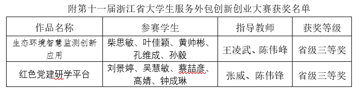 我校学子在第十一届浙江省大学生服务外包创新应用大赛中获佳绩
