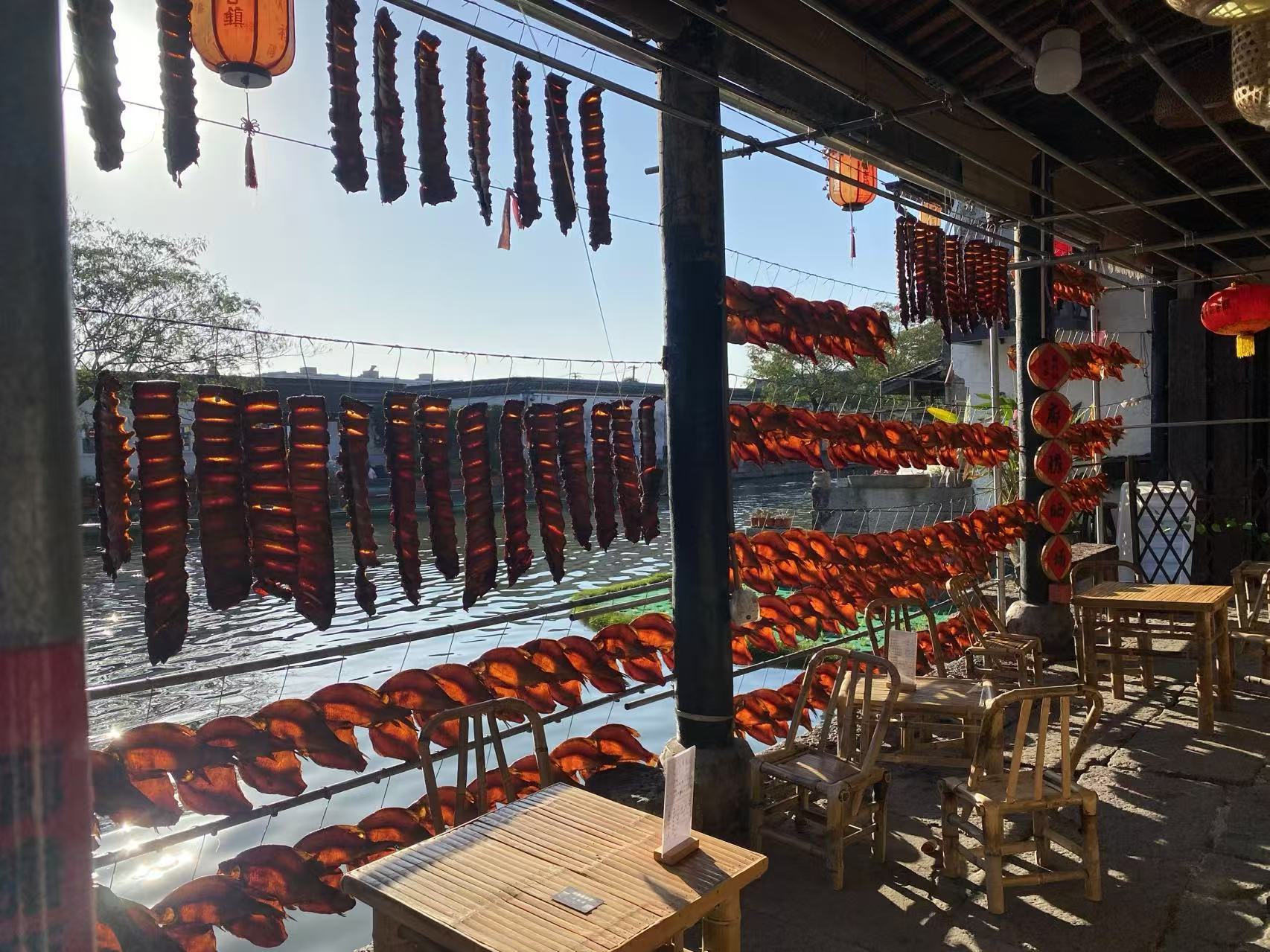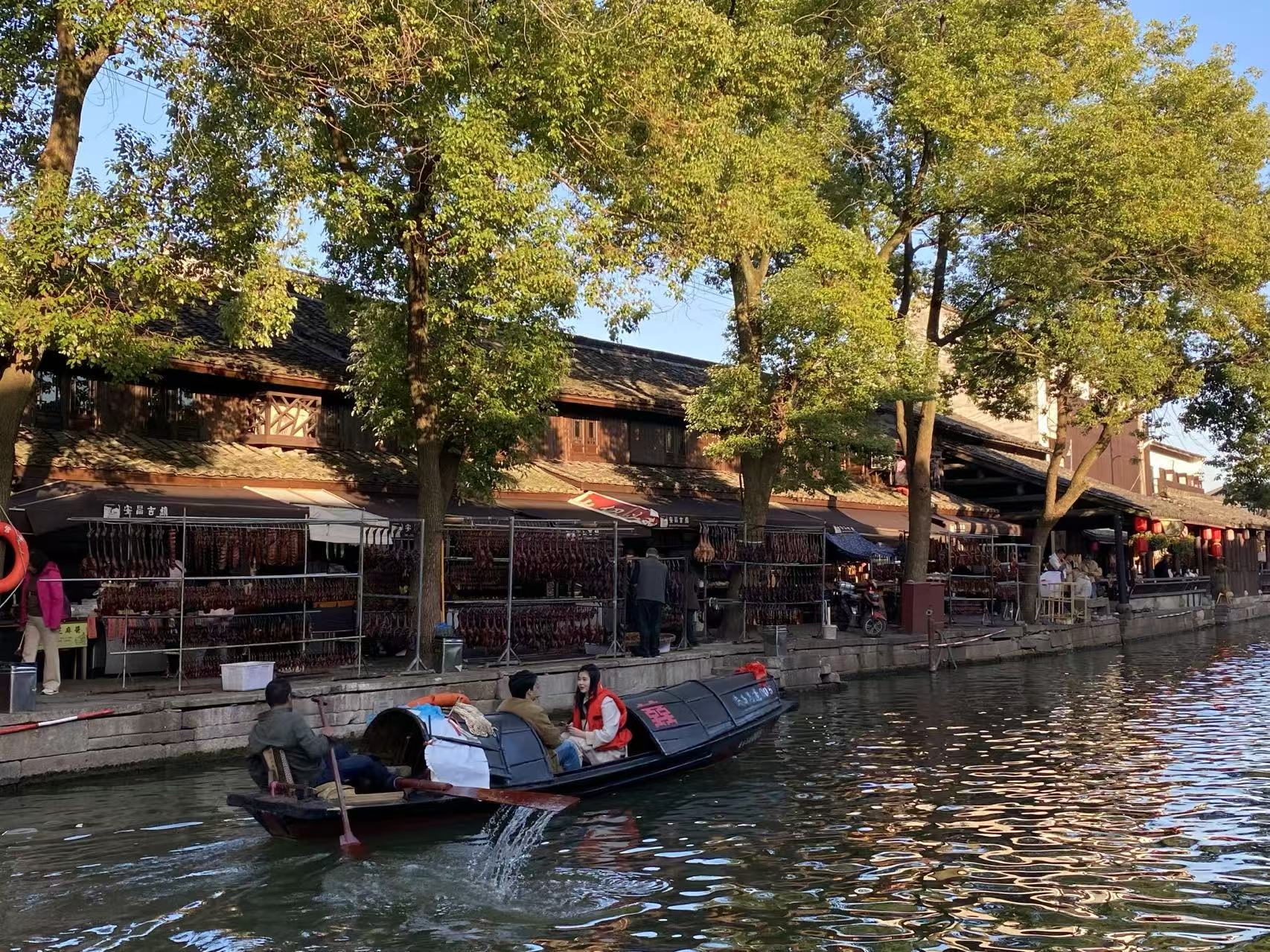 下午大家来到安昌古镇,这座位于绍兴西北部的千年古镇,宛如一颗璀璨的明珠,散发着浓郁的年味,承载着江南水乡的独特韵味和深厚的历史文化内涵。老师们踏入古镇,首先映入眼帘的是那一串串挂满沿河廊檐下的腊肠、酱鸭和鱼干等腊味,在冬日的阳光下泛着诱人的光泽,散发着阵阵酱香。沿着古镇的青石板路漫步,古街两旁的传统店铺琳琅满目,摆满了各种特色商品和年货。从扯白糖、黄酒棒冰到各种手工艺品,应有尽有。当地的居民们在街边悠闲地生活着,或晒太阳、或聊天、或忙碌着手中的活计,展现出一幅充满烟火气的生活画卷,让人感受到浓浓的年味和家的温暖。