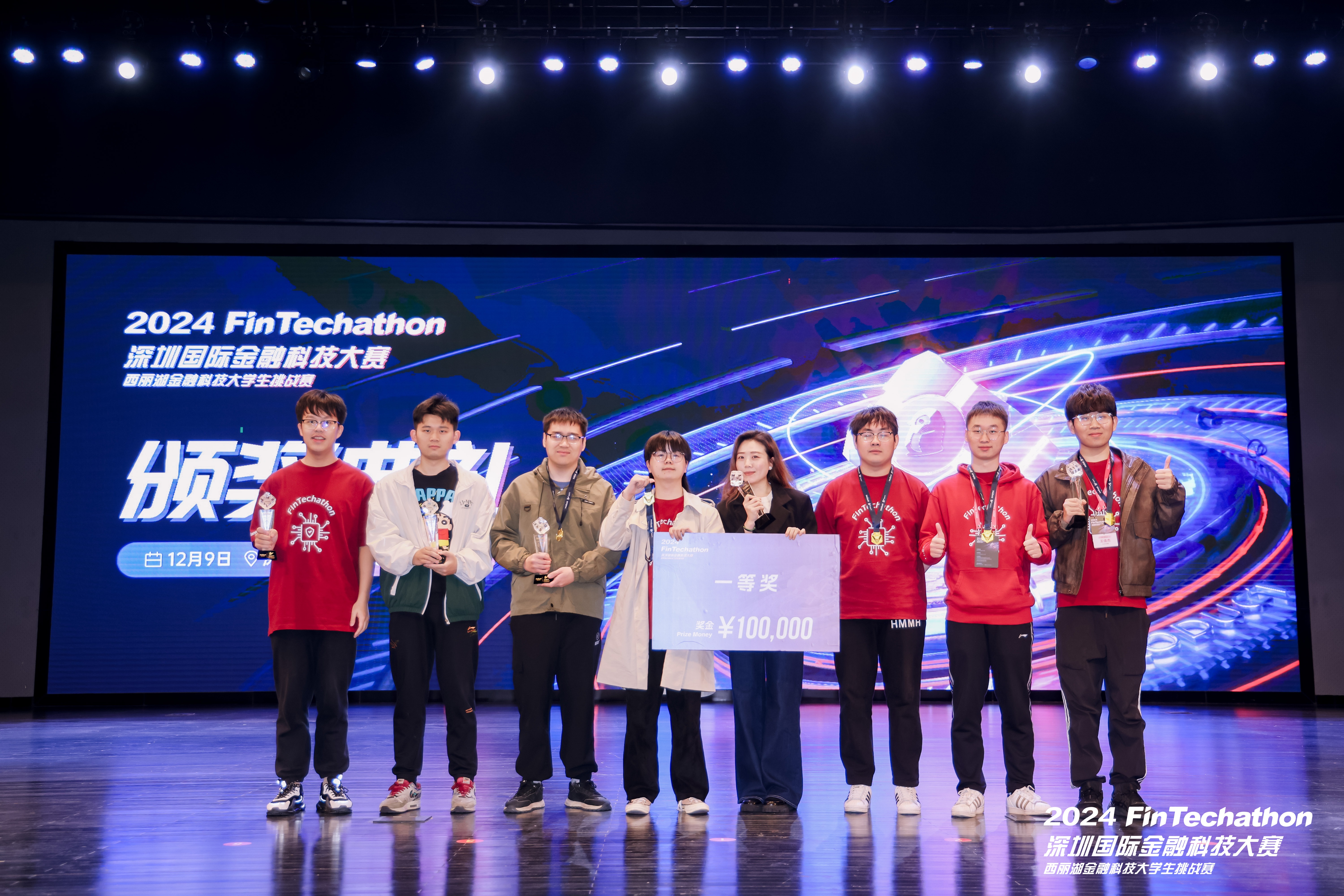 2024年12月9日,由深圳市地方金融管理局战略指导,深圳大学、微众银行和深圳香蜜湖国际金融科技研究院联合主办的2024 FinTechathon 深圳国际金融科技大赛在深圳大学丽湖校区圆满落幕。经过数月的激烈角逐,我校太阳成两支队伍成功入围人工智能赛道十强,并在决赛中表现优异,其中一支队伍勇夺桂冠并获得10万元奖金。