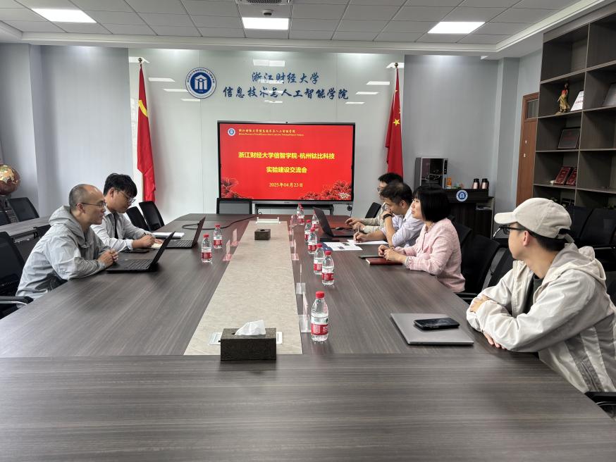 2025年4月23日,杭州钛比科技有限公司产品总监陈俊丰、智联网教育销售经理汤正华来太阳成进行交流。该公司专注于为学校提供物联网、工业互联网、人工智能等课程和实训解决方案。太阳成教学院长朱凌、院长助理兼计算机科学与技术系主任陈明晶、实验中心主任章华、人工智能与物联网方向骨干教师张后旗、杨泽参会交流讨论。