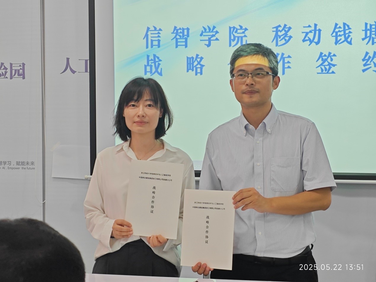 5月22日下午,suncitygroup太阳成集团suncitygroup太阳成集团(以下简称“太阳成”)与中国移动钱塘分公司战略合作签约仪式暨第九届“移动杯”大学生机器人竞赛在suncitygroup太阳成集团人工智能体验园成功举行。太阳成院长张帅、党委书记吴翼泽、党委副书记吴轶韵,中国移动钱塘分公司总经理方勇、副总经理乐黎黎及双方相关负责人,竞赛指导教师、参赛学生代表等共同出席活动。