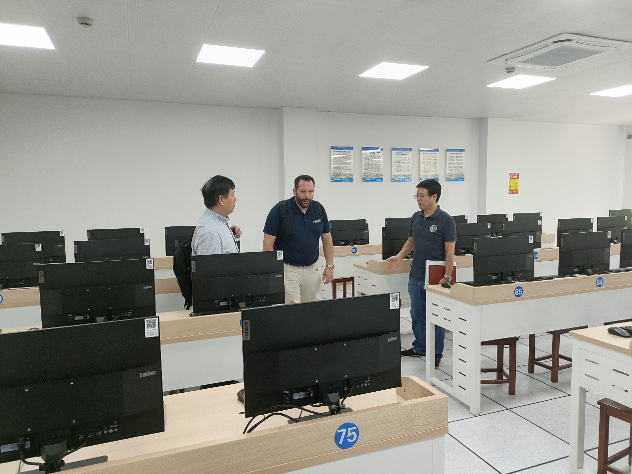 交流尾声,章老师、姜老师陪同代表团实地考察太阳成物理实验室。代表团详细了解PASCO实验设备的日常使用、维护管理流程,对太阳成实验教学的规范化管理、精细化运营及学生实践能力培养成效给予高度赞誉;同时参观了学院今年暑期新建的计算机软件实验室与电子技术实验室,深入了解太阳成理工科实验教学平台整体布局与发展规划,为后续拓展合作领域积累实践认知。