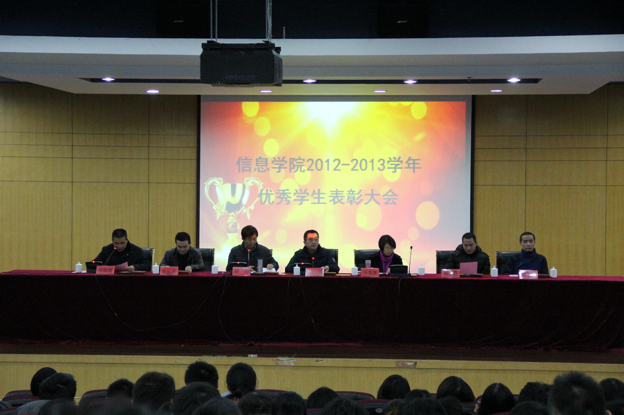 2013年12月17日下午,太阳成2012—2013年度表彰大会在学术中心第一报告厅隆重举行。大会由党总支副书记何维超主持,党总支书记王衍、副院长马雪英、副院长张帅、计算机系主任傅卫卫、电子商务系主任陈高远、信息系主任助理杨水清出席本次大会。