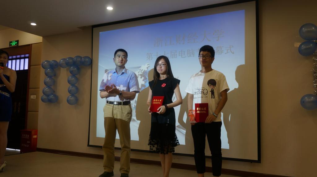 首先由配音大赛一等奖获得者现场配音《冰雪奇缘》。灵动的声音切实还原了电影人物,带动了现场的气氛。紧接着对本届电脑节系列活动中获得奖项的同学进行现场表彰。随后是优秀成果现场展示,分别有浙江省第十四届“挑战杯”中取得优异成绩的亮点团队和聚信息团队以及“其乐”校园团队主创吴姚迪学长进行分享。活动的最后以一段优秀选手采访视频作为本届电脑节的一个圆满结点。