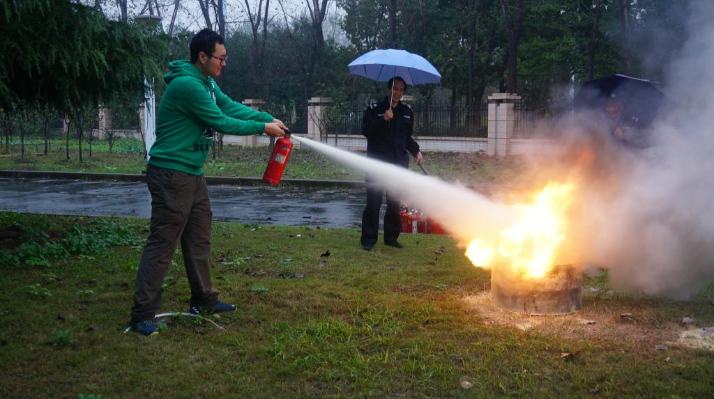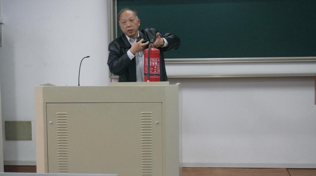 讲座上,李老师首先给同学们播放了一段视频,并以视频中各高校的火灾事件为案例,生动阐述了普及消防安全知识以及提升大学生消防意识的重要性,发人深省。紧接着,李老师以图片的形式展示了我校学生宿舍存在的安全隐患,并用深入浅出的语言向同学们介绍了干粉灭火器的使用方法及火灾自救与逃生常识,让同学们对消防知识有了更直观更全面的了解。讲座结束后,同学们在东体育馆集合进行了消防安全演练,在李老师与保安的指导下,顺利地使用干粉灭火器完成了灭火任务。