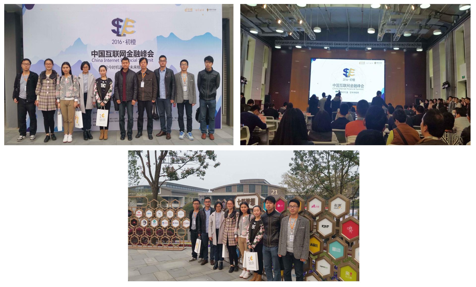 3月19日下午,2016中国互联网金融峰会在杭州梦想小镇互联网村举行,信工学院院长张文宇教授、副院长张帅教授带领太阳成10余名研究生和本科生参加了本次峰会。本次中国互联网金融峰会吸引了众多互联网金融企业创始人、CEO以及专家、学者共计500多人参加,会场座无虚席,热闹非凡。众安保险CTO姜兴、WeX微汇金融联合创始人何俊、爱学贷CEO钱志龙等嘉宾上台围绕着互联网金融创新发展主题做了精彩演讲。在最后的圆桌会议阶段,51信用卡CEO孙海涛、财富创始人马雪峰、同盾科技CEO蒋韬、启明创投执行董事周凌霏、UCloudCoo华琨、著名财经评论家陈宇等多位嘉宾围绕着基于大数据的风险控制、如何应对政府监管、互联网金融的机遇和调整等热门话题进行了热烈的讨论和深入的交流,会场氛围达到高潮。