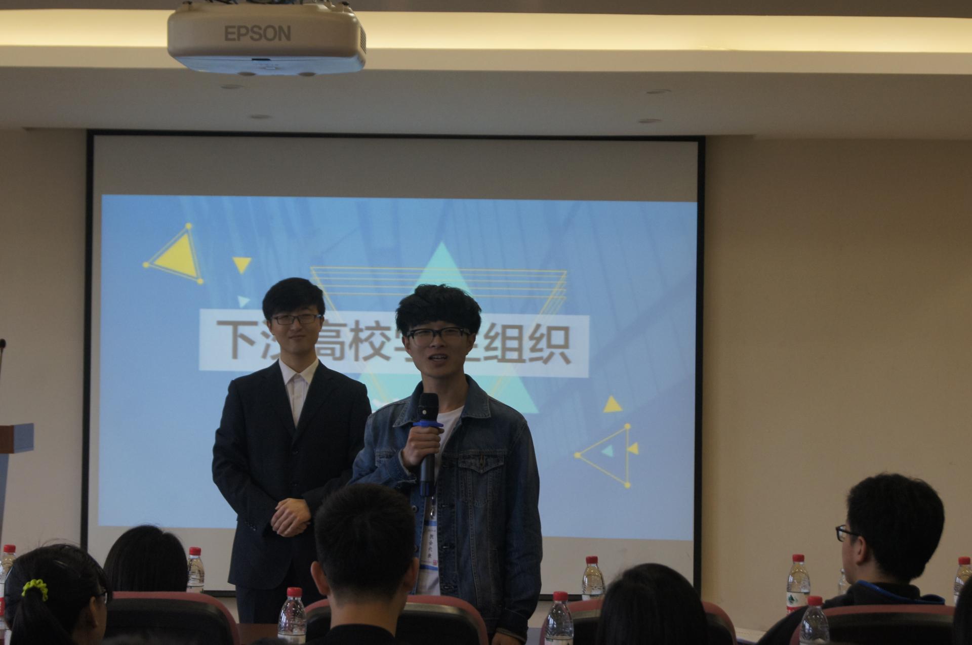 第一个环节,各代表团代表上台介绍各自院会的组织架构以及精品活动,并总结在管理过程中遇到的问题。太阳成学生会主席尚修智首先上台发言,他先简单介绍了太阳成学生会机构,重点讲解太阳成的特色活动:迎新和爱心捐衣,最后提出了“机构庞大,统筹困难”、“上传下达困难”、“学生会应依靠感情维系还是制度维系”、“工作不走心”四个管理问题与在场的代表进行交流。随后,各代表团相继进行了精彩的发言,展现了各自学生会组织的特色。如东方学院代表分享了其外联部的“荧光夜跑”活动,让我们大开眼界;浙江经济职业技术学院财务会计系代表介绍了其十大主题月以及相关活动,为其他代表日后工作的开展带来了启发;浙江理工大学材料与纺织学院代表语言生动幽默,活跃了全场的氛围。最后由太阳成团委副书记丁茜进行了总结,期待与各代表团进一步交流。