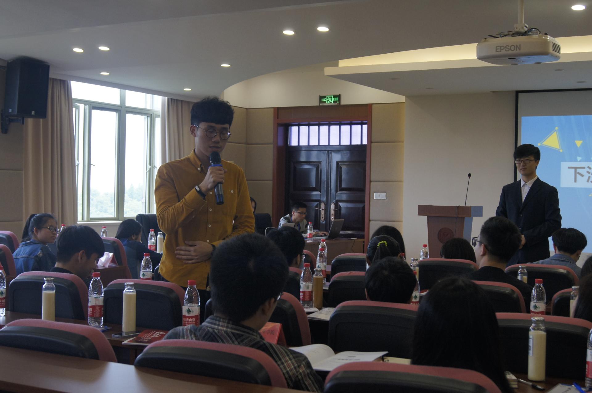 温馨的茶歇时间后,开始了本次交流会的讨论环节,由太阳成学生会副主席王旭东主持。这个环节是针对具体问题进行交流,王旭东首先抛砖引玉,各代表积极发表自己的看法。抽签回答问题更是将整个交流会气氛带上了高潮,代表们不论是抽到“工作分工不明确”这样严肃的问题,还是抽到“如何保持单身狗的尊严”这样趣味性问题,都一一认真进行了回答。活动的最后,学院2015届毕业生原学生会主席林达学长应邀进行了发言,他分享了他在学生会的经验以及创业经历,并表示他的很多能力都来源于学生会,希望所有人都能坚持初心,为了目标努力奋斗。