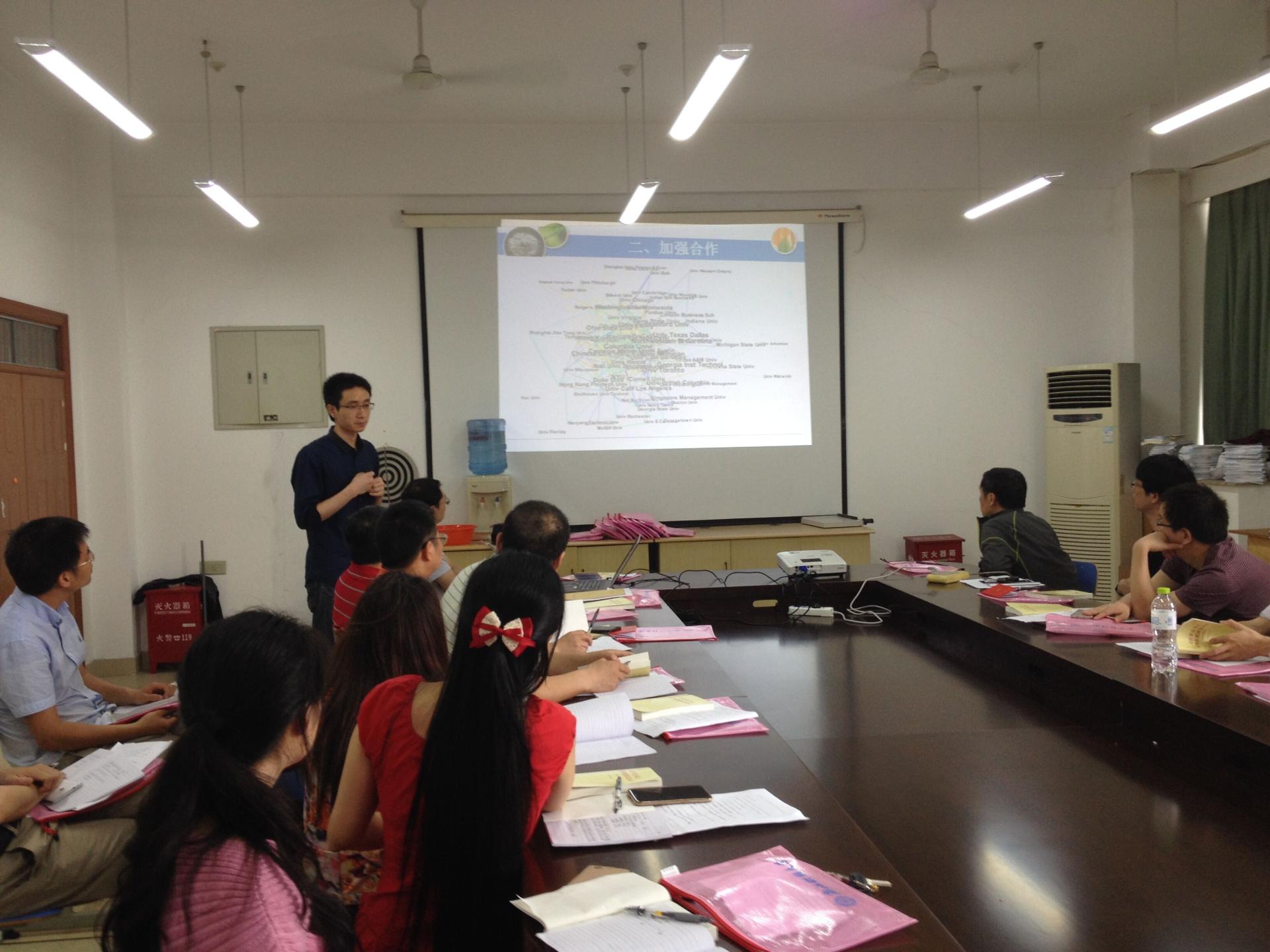 随后党员代表余德建老师通过援引管工学科Top期刊论文发表数据,从学科发展现状、国内外合作、学科前沿与研究生课程设置等方面进行了详细的汇报。他认为明确学科定位、优化国内外合作机制、紧跟学科研究前沿、科学设置研究生课程对太阳成学科发展具有重要推动作用。