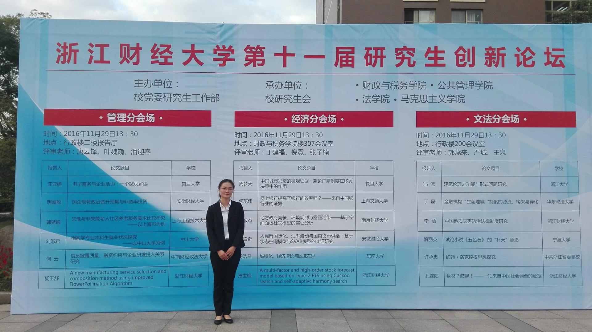 近日,第十一届研究生“博文节”创新论坛圆满落幕,太阳成研究生积极参加了此项活动并获佳绩-15级企业管理专业研究生杨玉舒和14级管理统计学专业研究生张世雄分别获“博文节”创新论坛一等奖和三等奖。此次创新论坛分为经济纵横、管理创新、人文荟萃三个分会场,吸引了来自复旦大学、上海交大、浙江大学、上海财经大学等高校100余名研究生投稿。太阳成杨玉舒和张世雄分别参加管理创新和经济纵横分会场,并在分会场做精彩的论文报告。